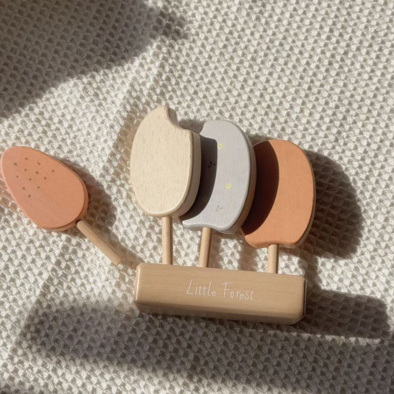 Ins 스타일 나무 수제 아이스크림 손으로 그린 장난감 나무 손잡이 어린이 방 장식 사진