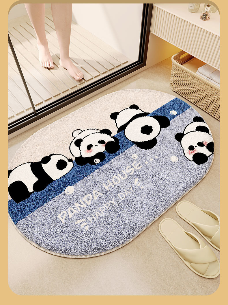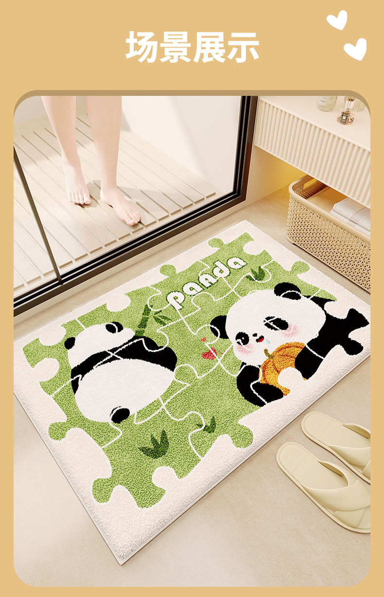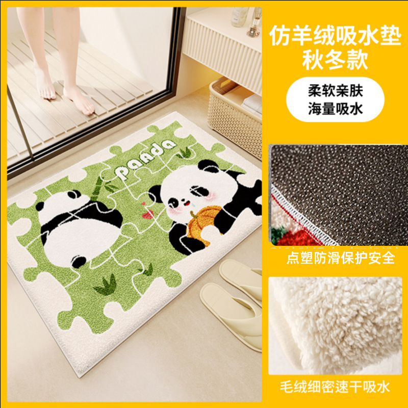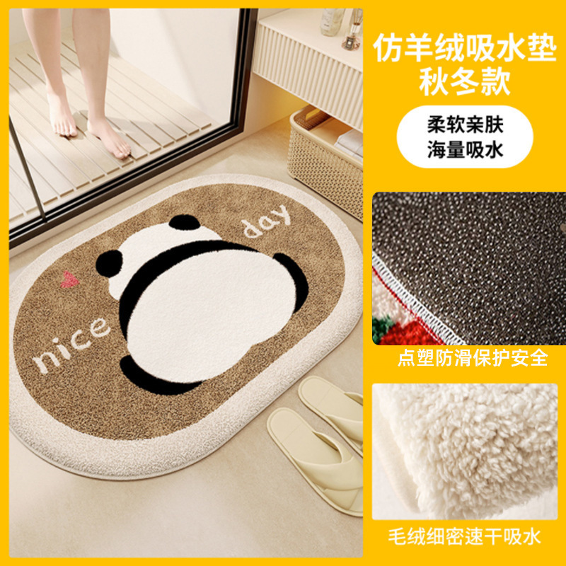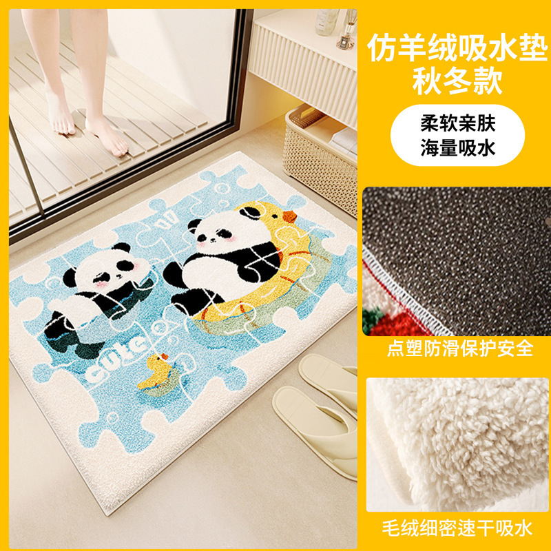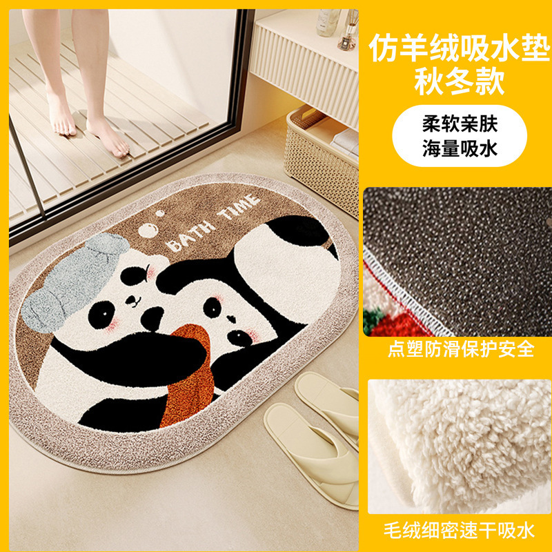 卡通熊猫浴室仿羊绒地垫厕所门口地毯门垫吸水防滑垫卫生间脚垫子