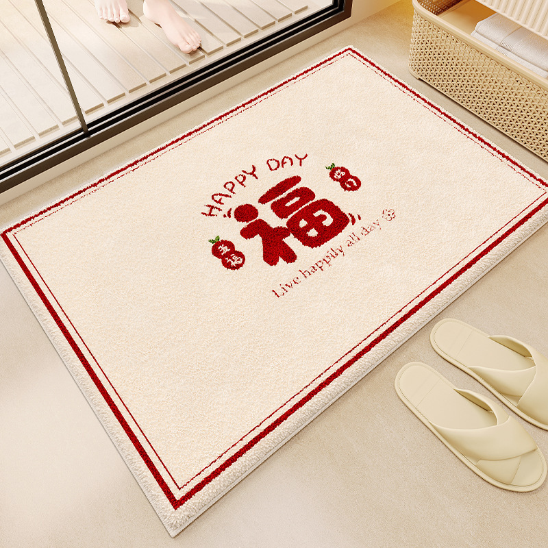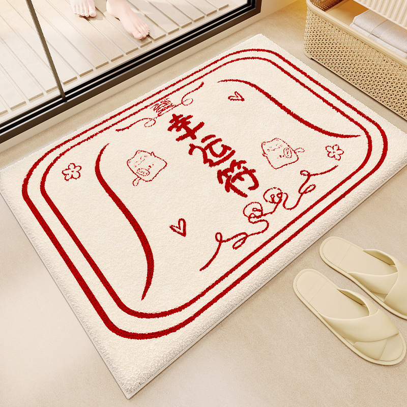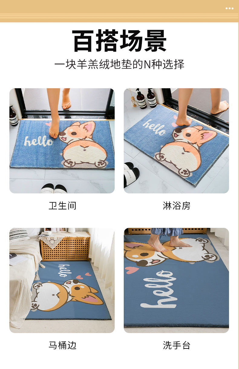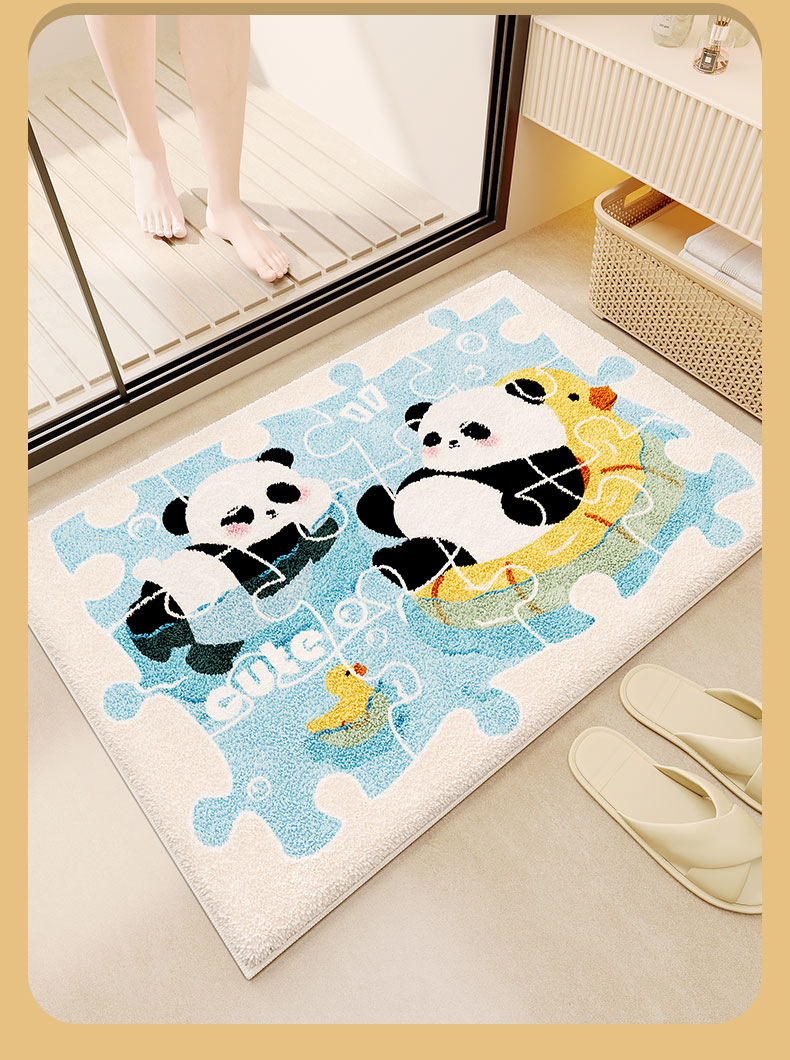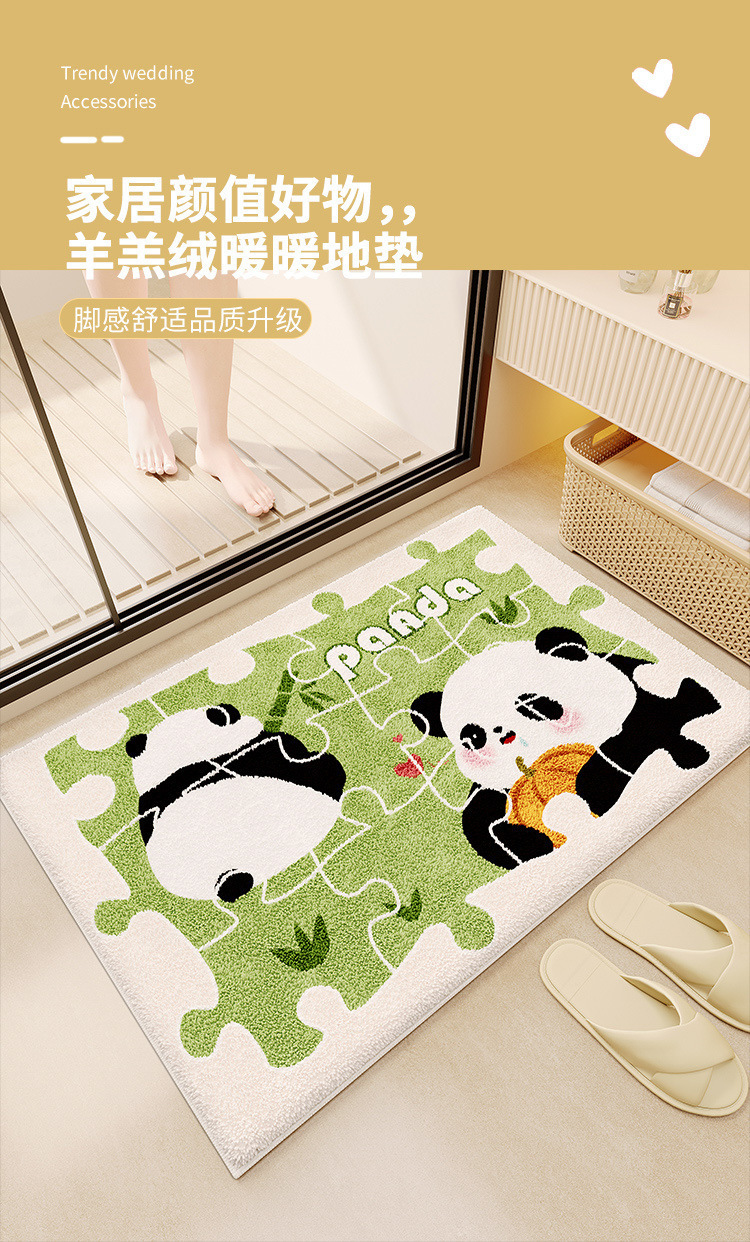 卡通熊猫浴室仿羊绒地垫厕所门口地毯门垫吸水防滑垫卫生间脚垫子