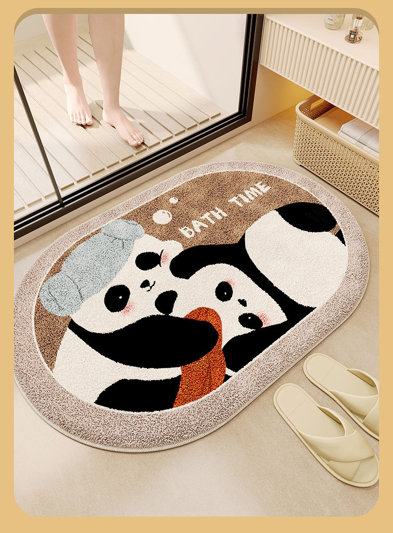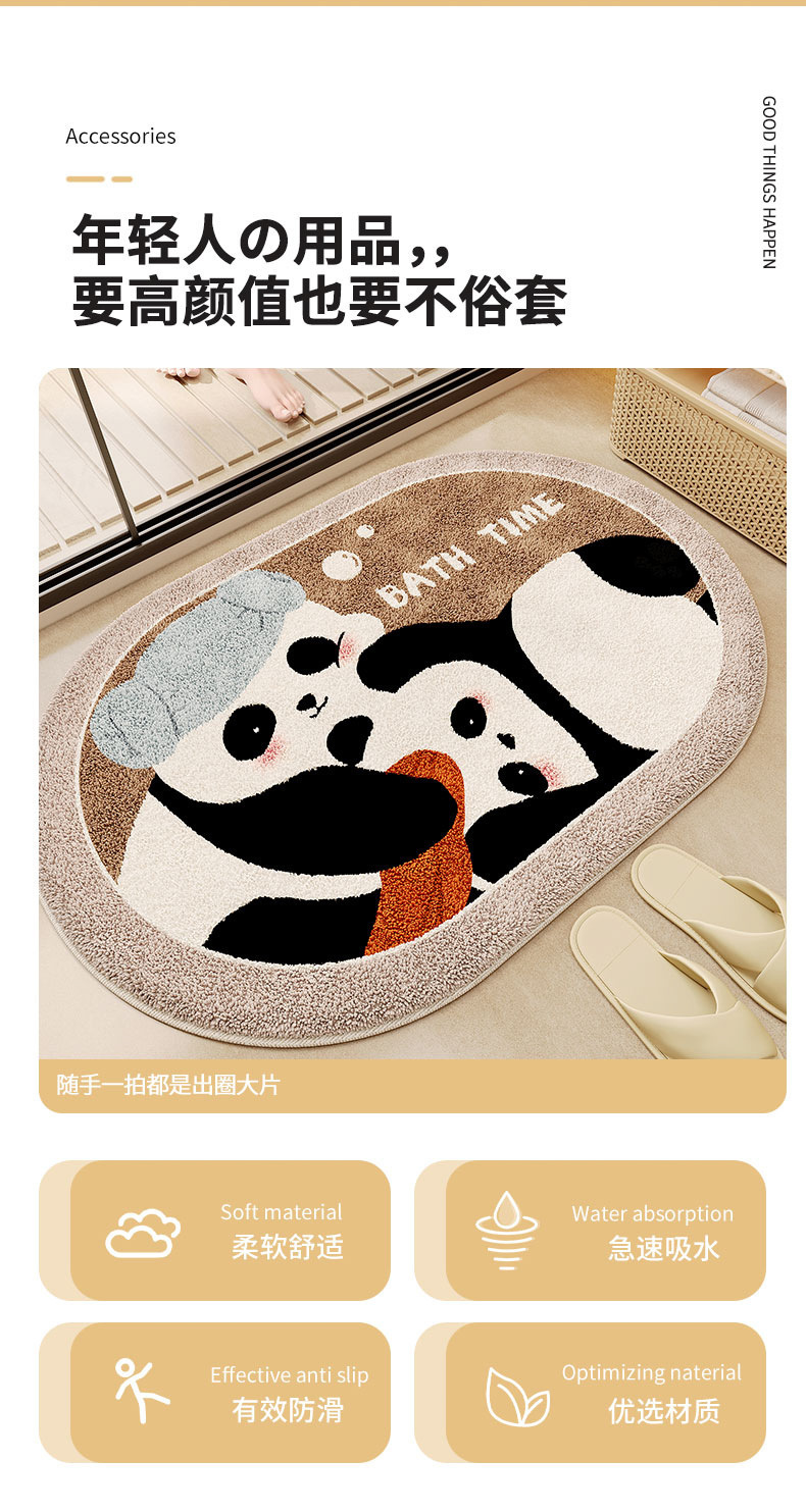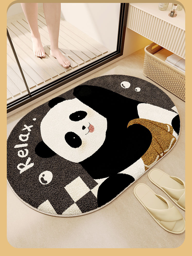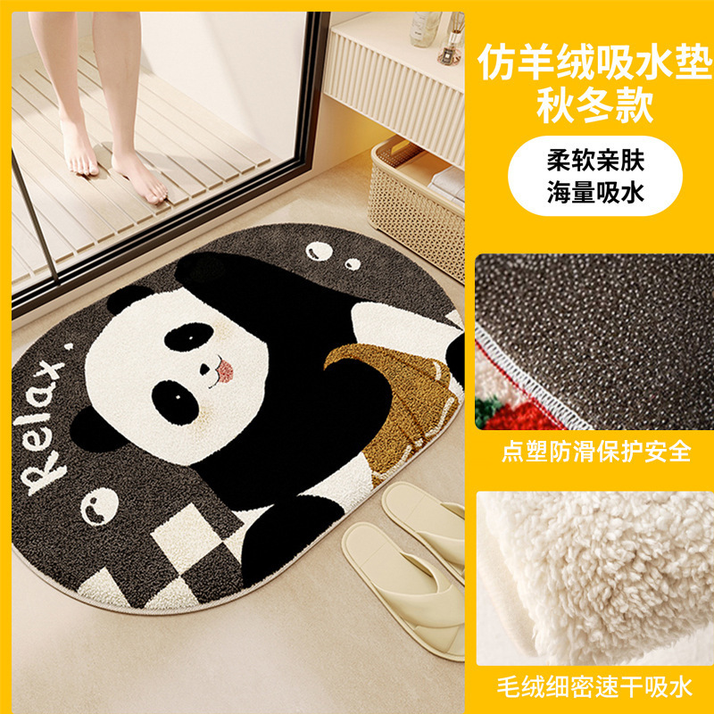 Yan 만화 팬더 욕실 캐시미어 바닥 매트 화장실 문 카펫 문 매트 흡수 안티 슬립 매트 화장실 발 매트스토어 가기