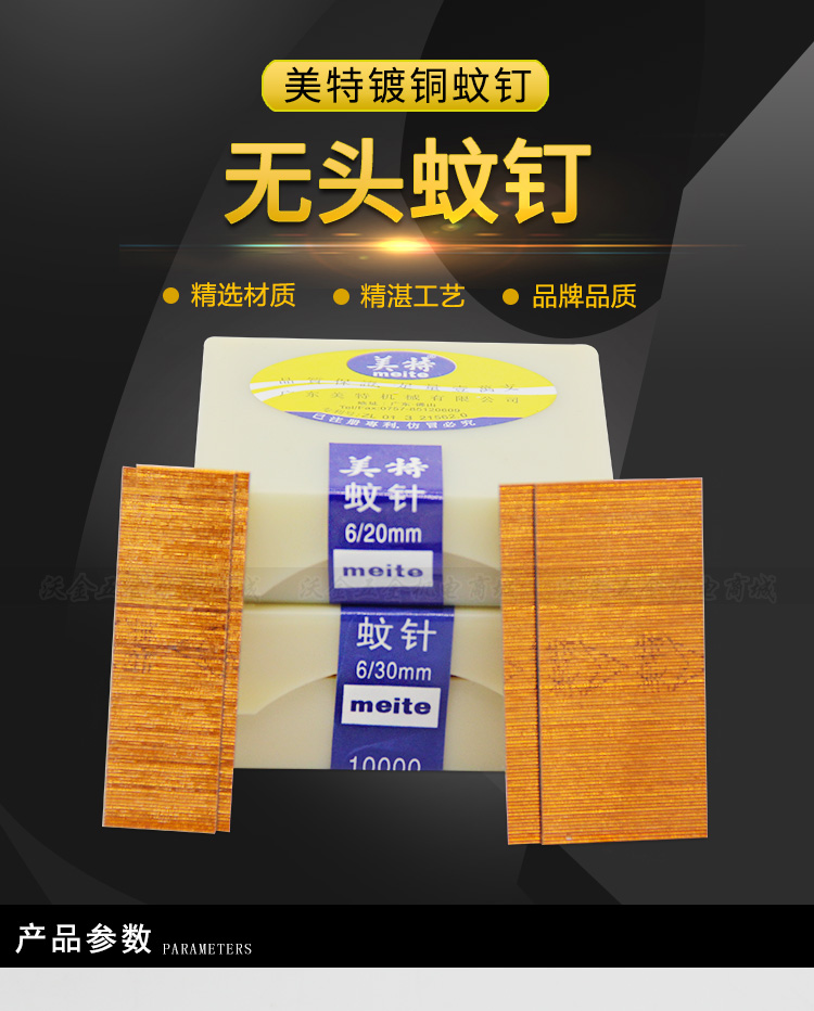 모기 손톱 조정 못 Wen Nail 모기장 목공 공기 총 못 구리 도금 머리없는 모기 바늘 못 p622p630 국가 표준