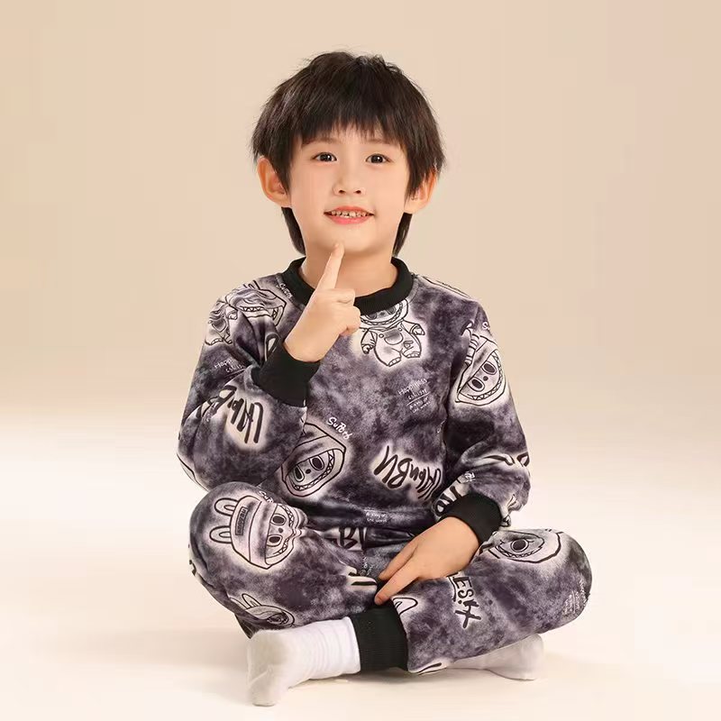 어린이 기모 열 속옷 세트 소년 소녀 아기 두꺼운 겨울 새 파자마 가을 옷 가을 바지 홈 옷
