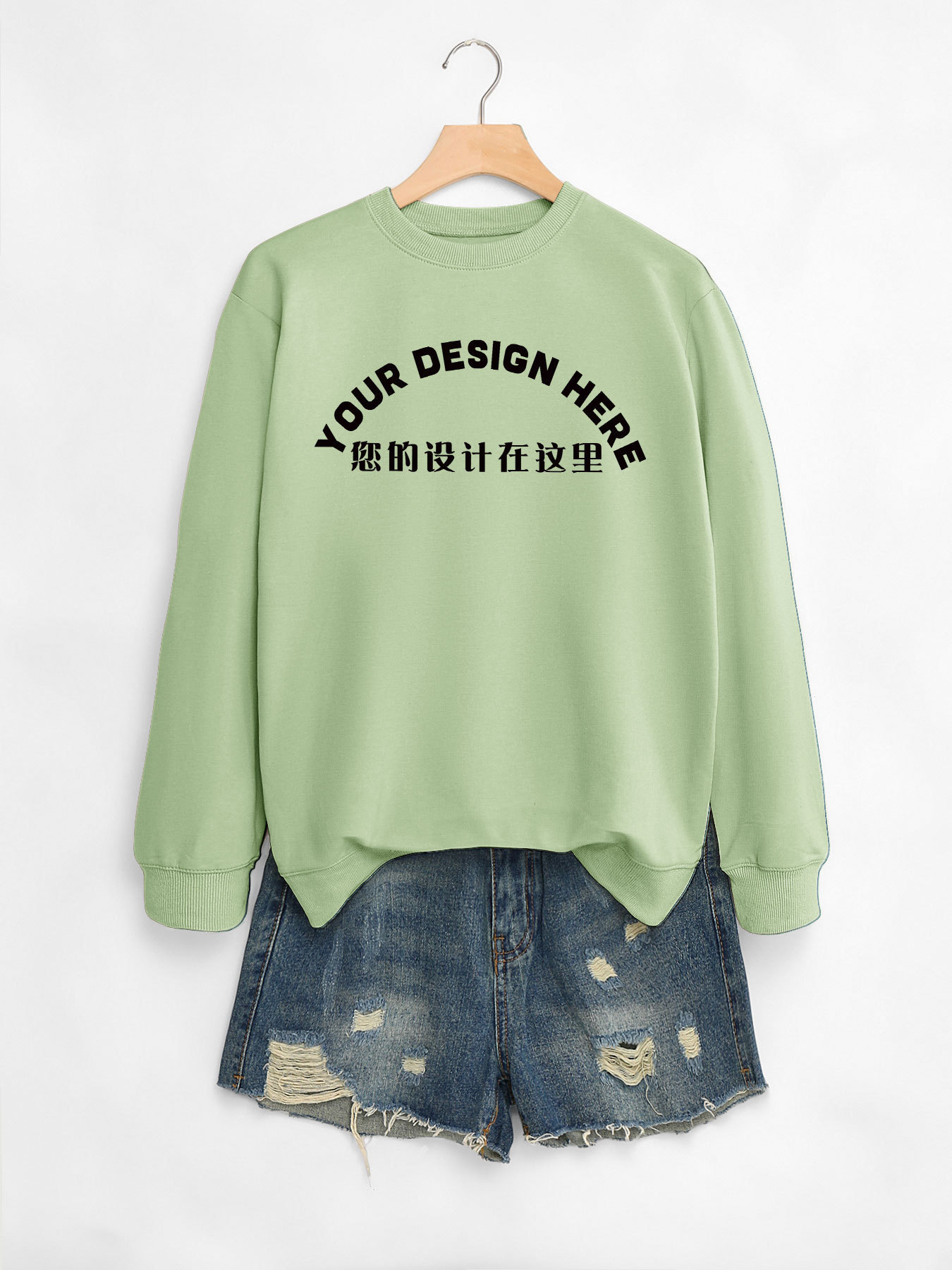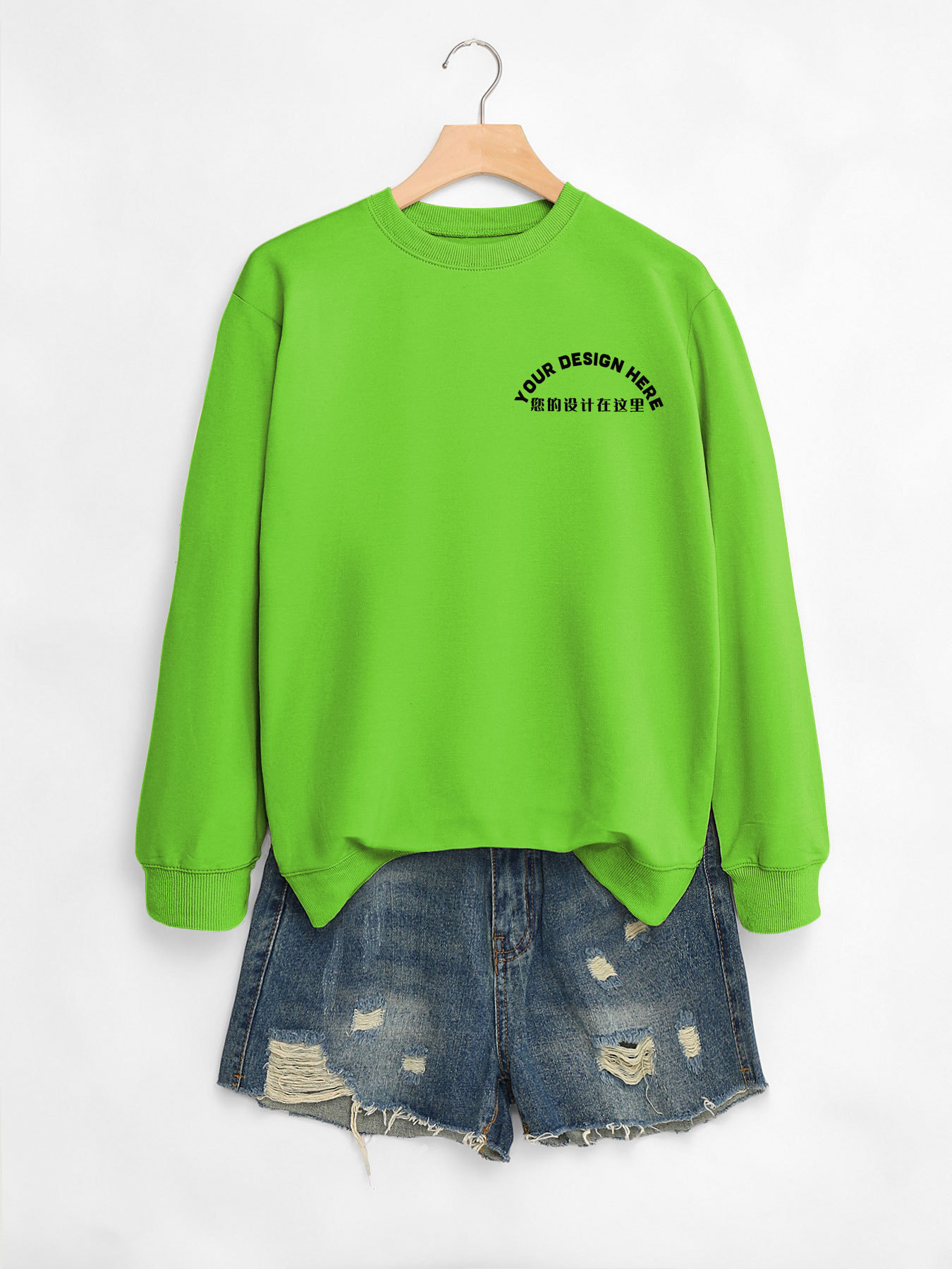 • 5801-라이트 그린 스웨트셔츠—앞 가슴