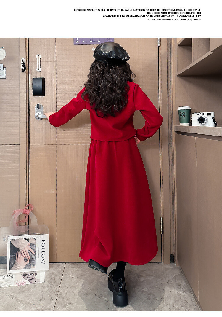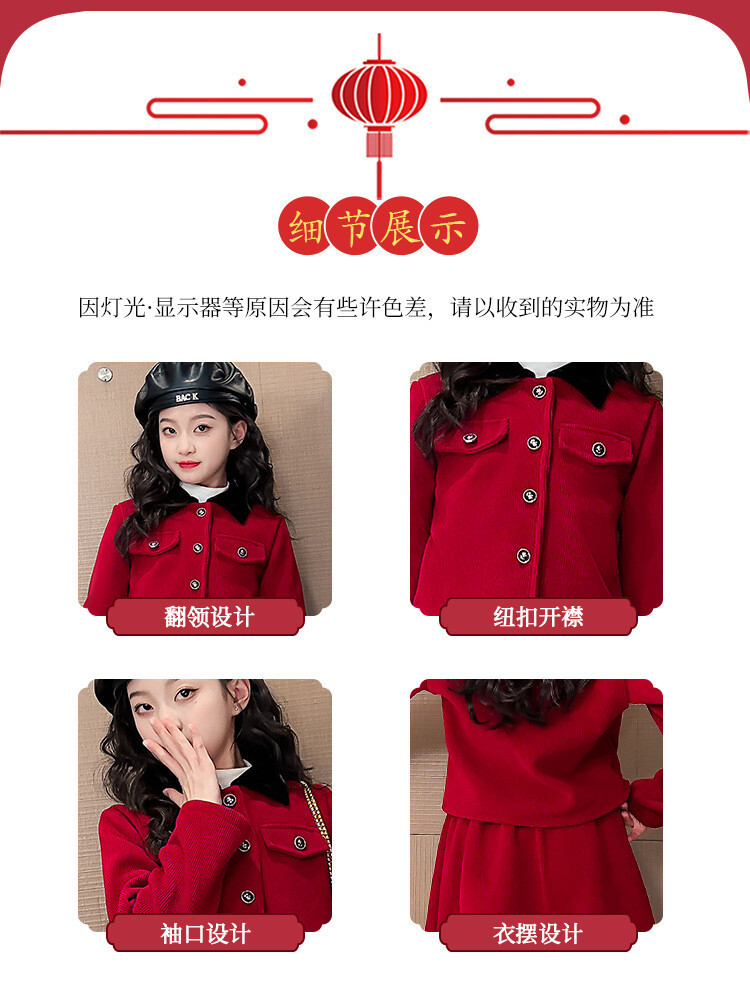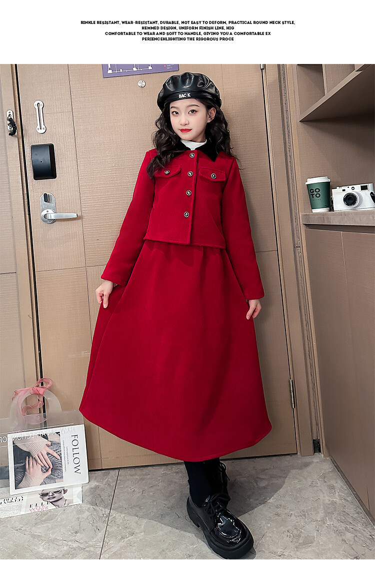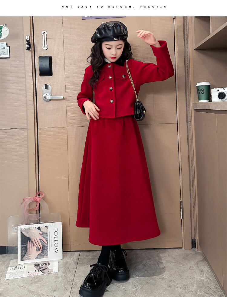 여자 세트 치마 두꺼운 빨간 서양식 신년 옷 가을과 겨울 새로운 어린이 작은 향기로운 스타일 스커트 투피스 세트스토어 가기