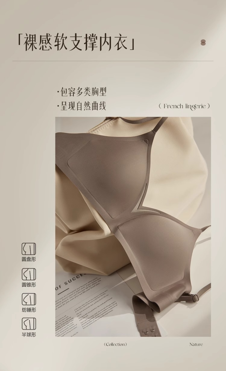 Tracless 속옷 여성의 큰 가슴 작은 가슴 푸시업 아름다운 뒤 프랑스 삼각형 컵 처짐 방지 소프트 지원 얇은 브래지어