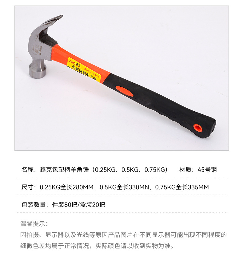 • Xinke 플라스틱 코팅 손잡이 클로 해머 (0.25KG, 0.5KG, 0.75KG)