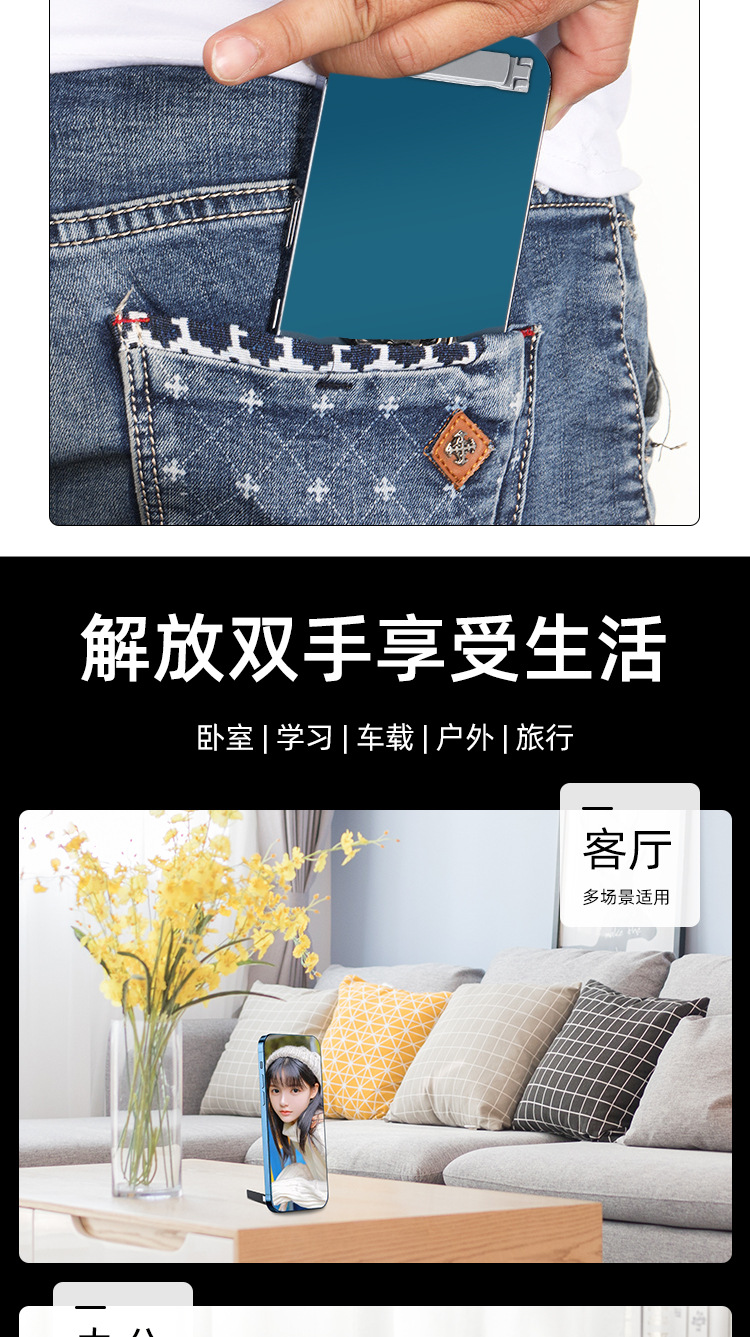 삼각대 백업 휴대 전화 홀더 합금 데스크탑 게으른 보이지 않는 접이식 초박형 휴대 전화 홀더 제조 업체 도매스토어 가기