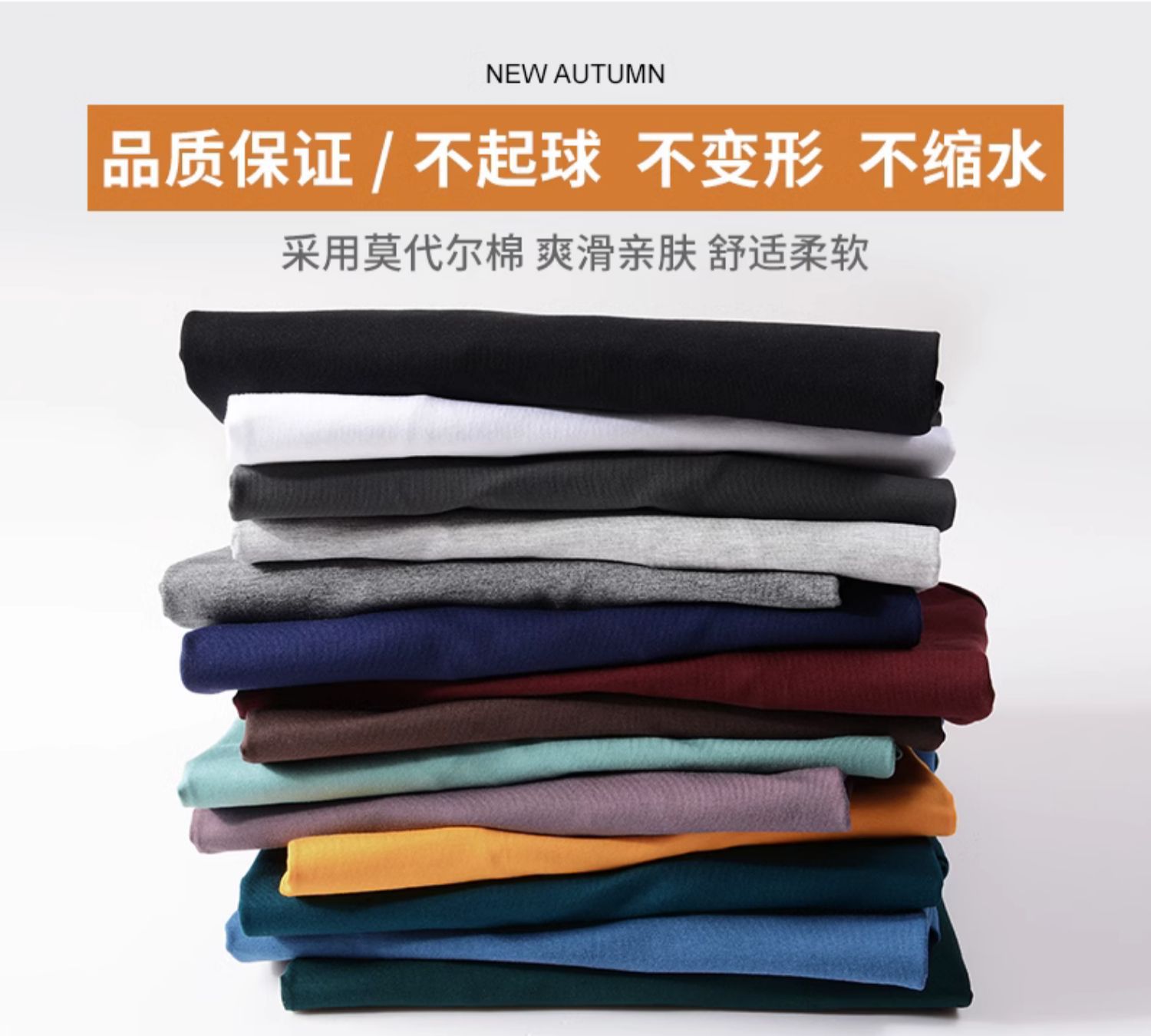 모달 남성용 높은 칼라베이스 셔츠 긴팔 티셔츠 가을과 겨울 옷 티셔츠 안쪽으로 두껍게 기모 따뜻한 탑 옷