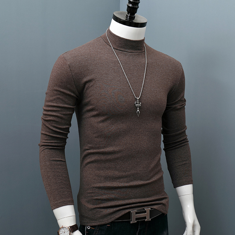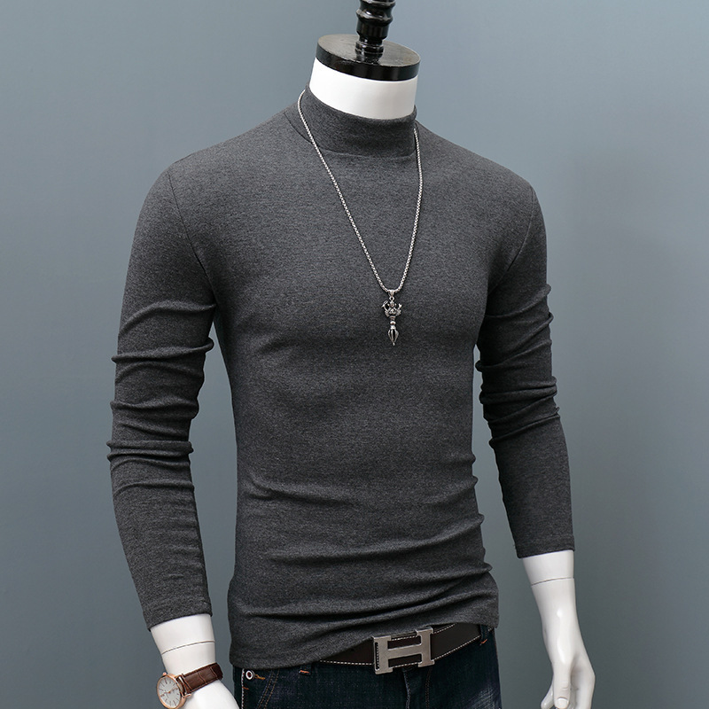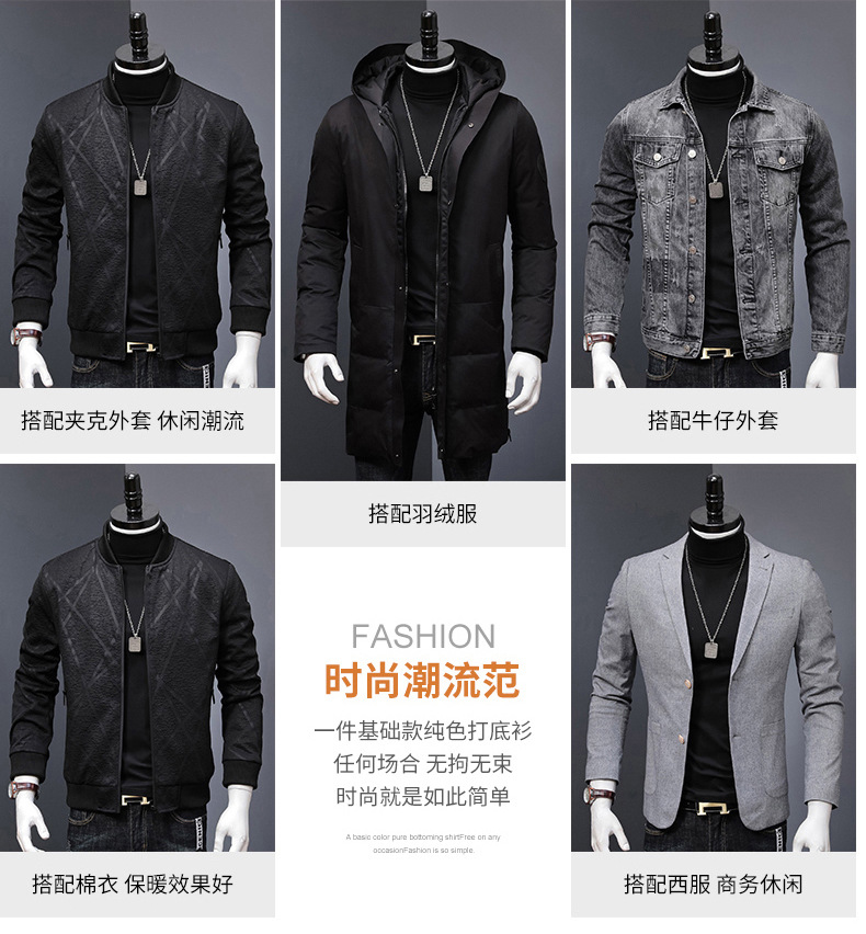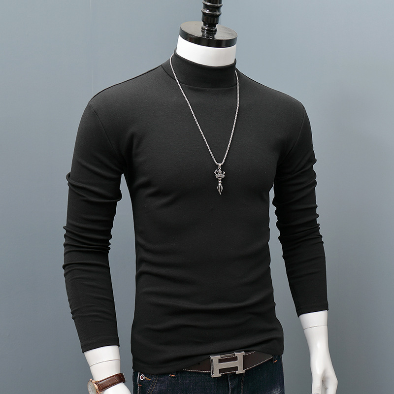 모달 남성용 높은 칼라베이스 셔츠 긴팔 티셔츠 가을과 겨울 옷 티셔츠 안쪽으로 두껍게 기모 따뜻한 탑 옷스토어 가기