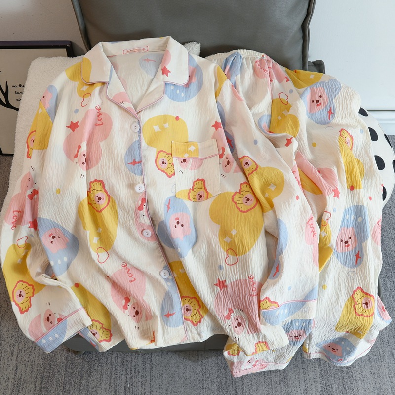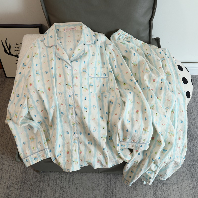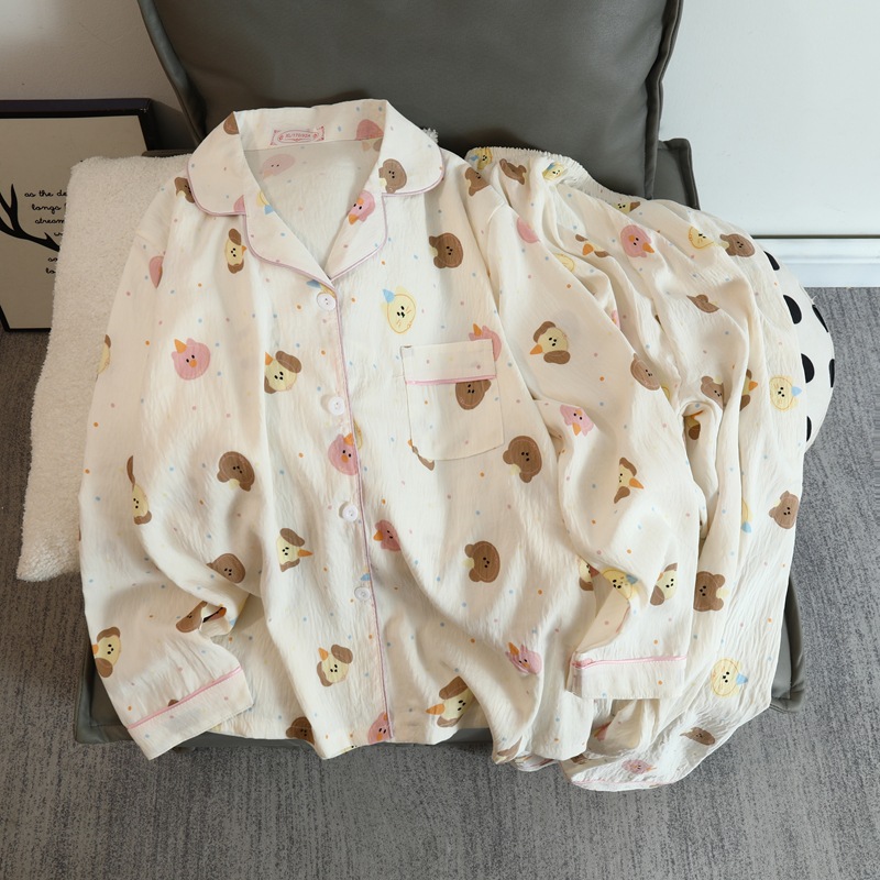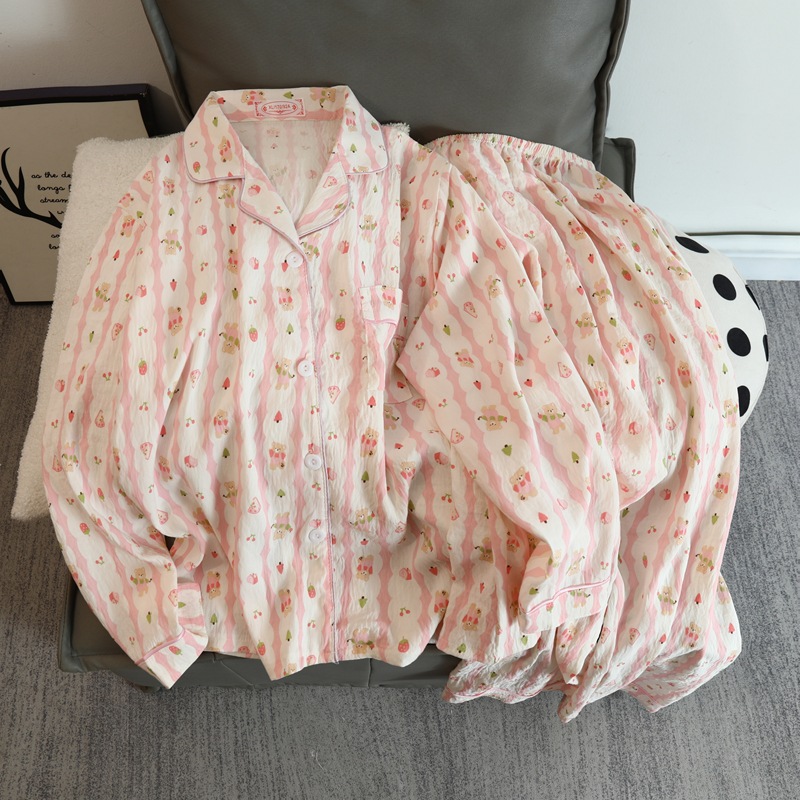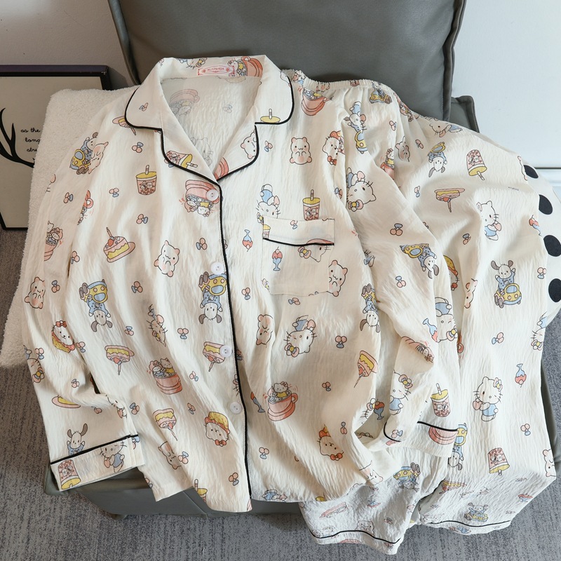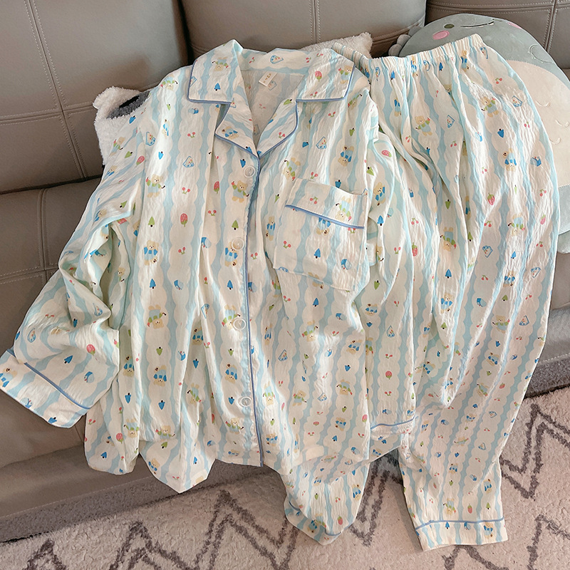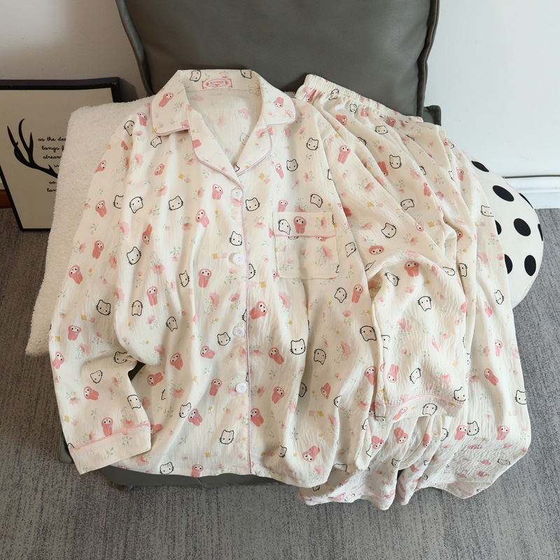 2025 새로운 긴 소매 달콤한 구름 면 파자마 소녀 인스 타 그램 스타일 만화 귀여운 봄과 가을 의상 홈 옷