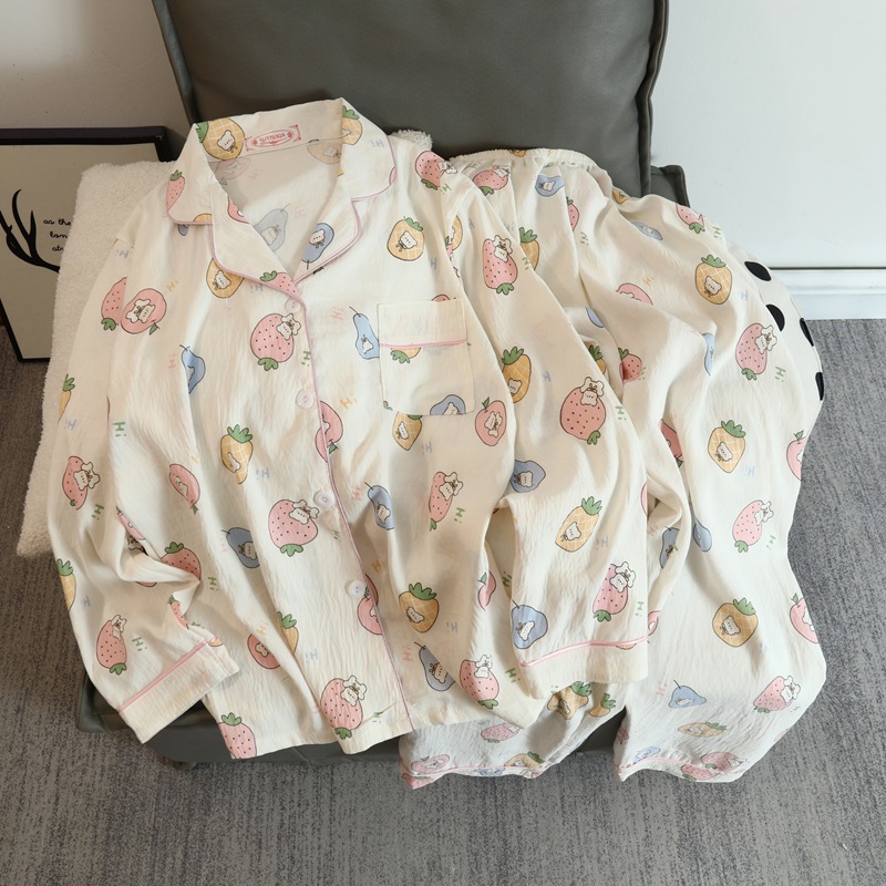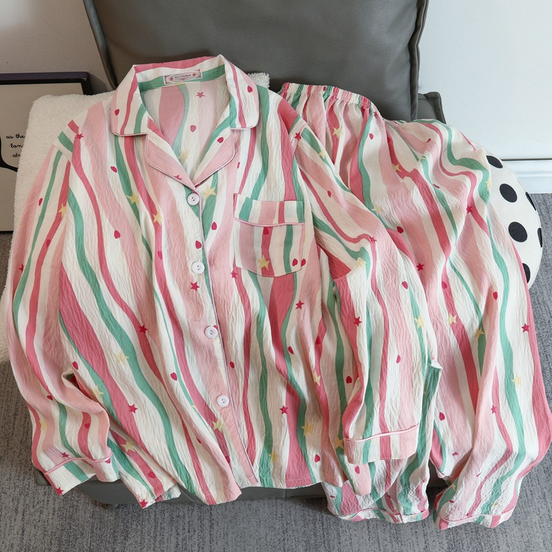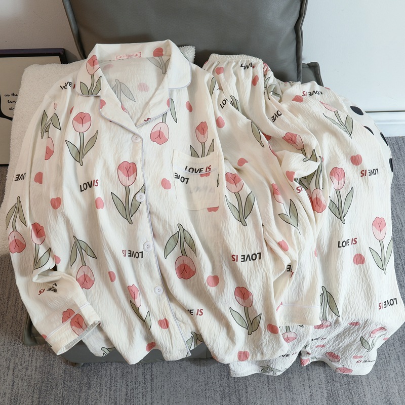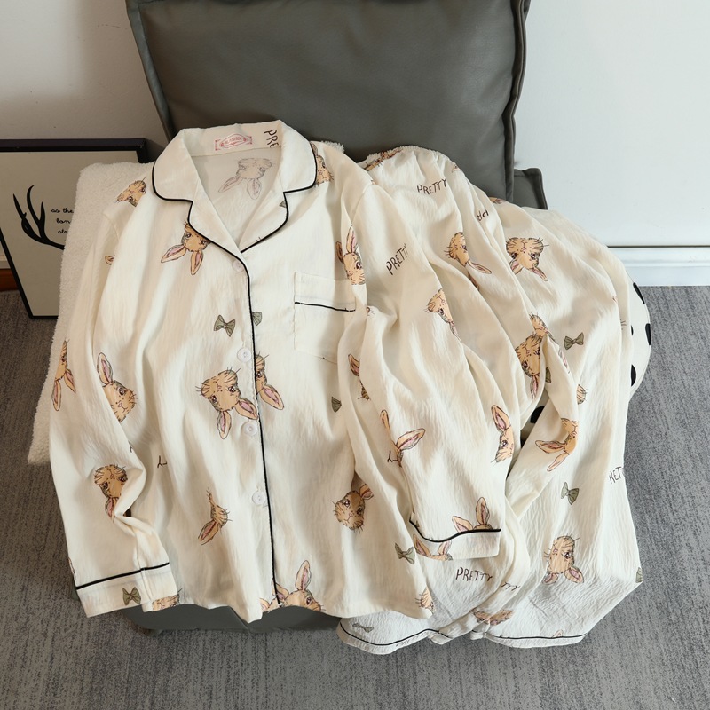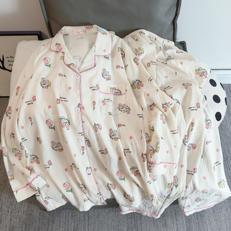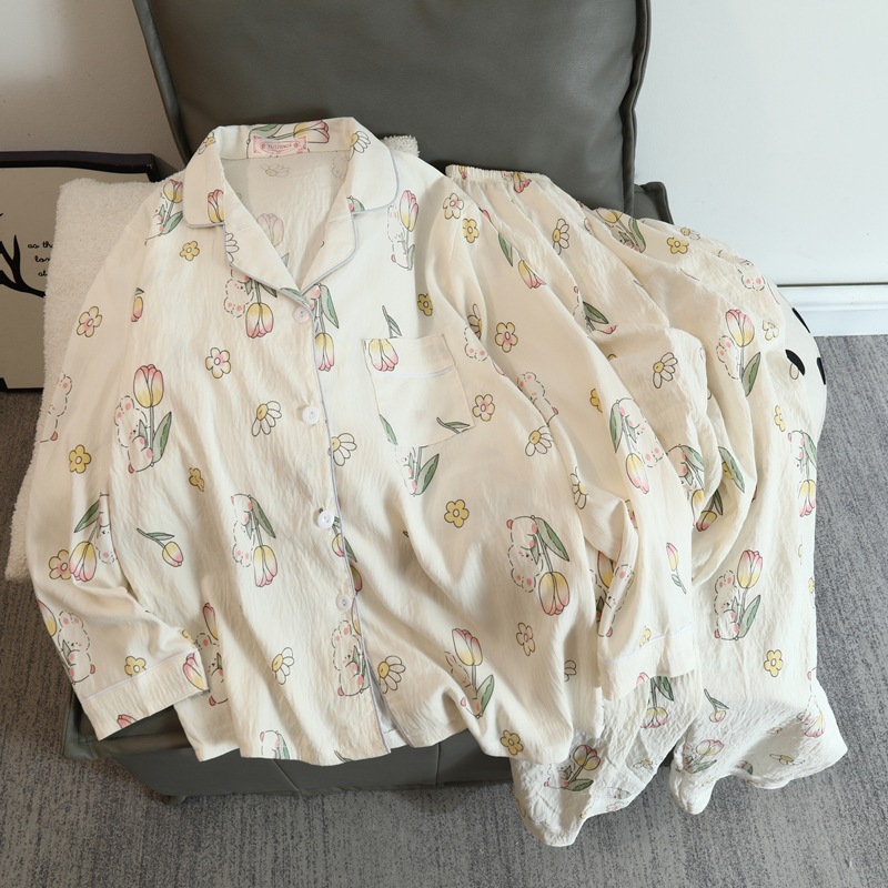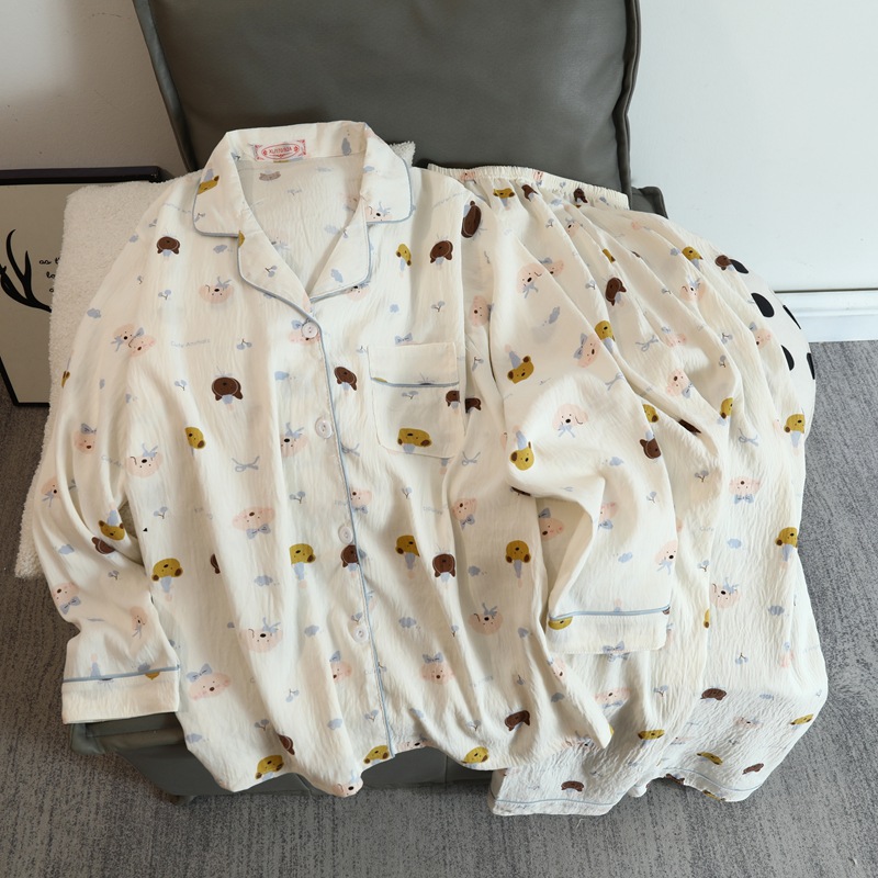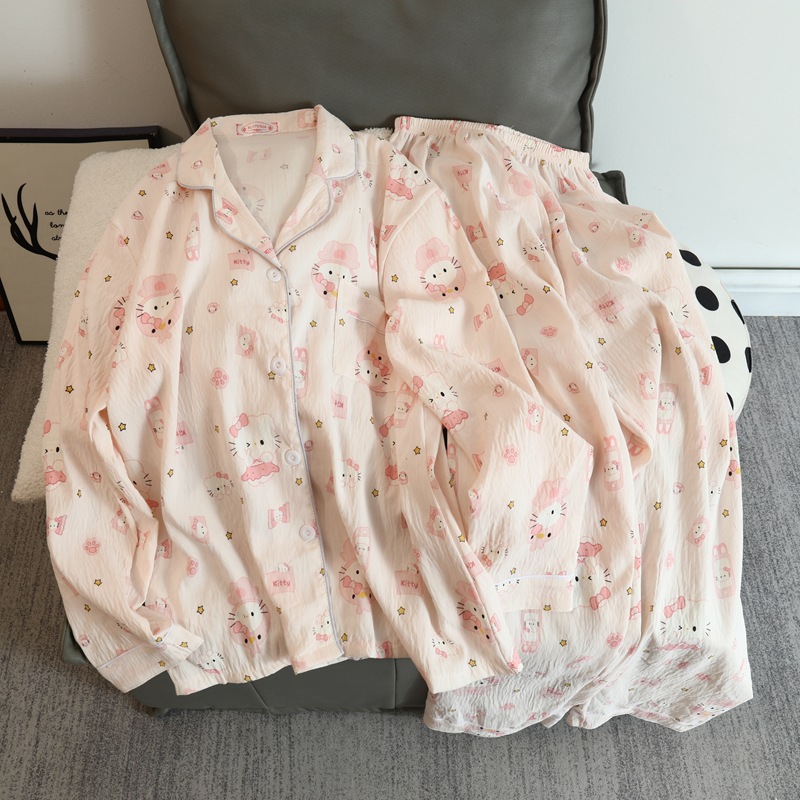 2025 새로운 긴 소매 달콤한 구름 면 파자마 소녀 인스 타 그램 스타일 만화 귀여운 봄과 가을 의상 홈 옷