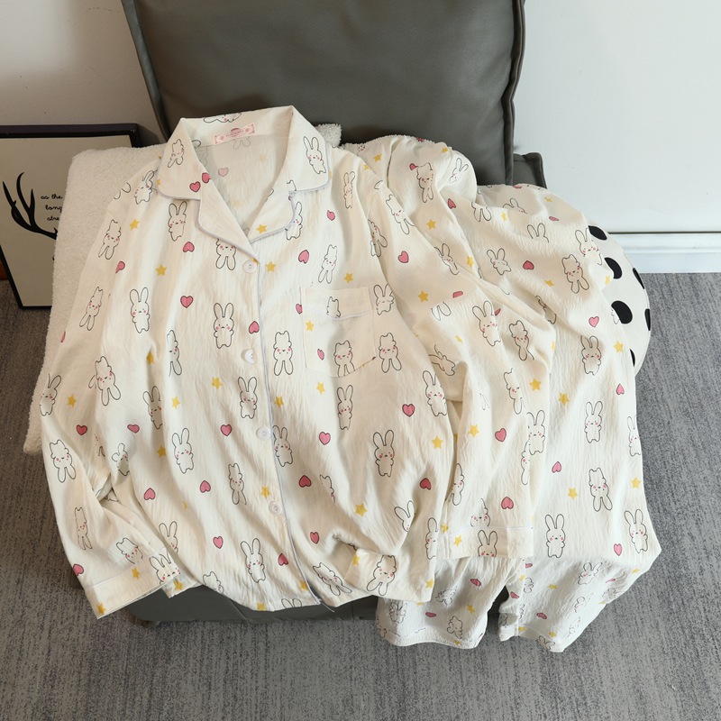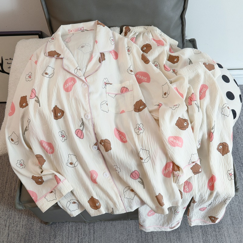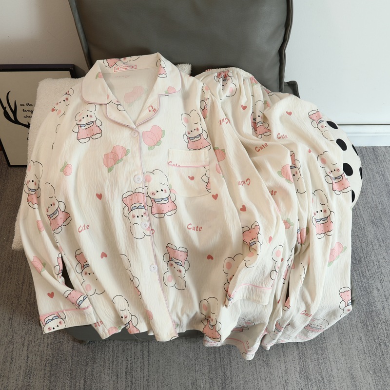 2025 새로운 긴 소매 달콤한 구름 면 파자마 소녀 인스 타 그램 스타일 만화 귀여운 봄과 가을 의상 홈 옷스토어 가기