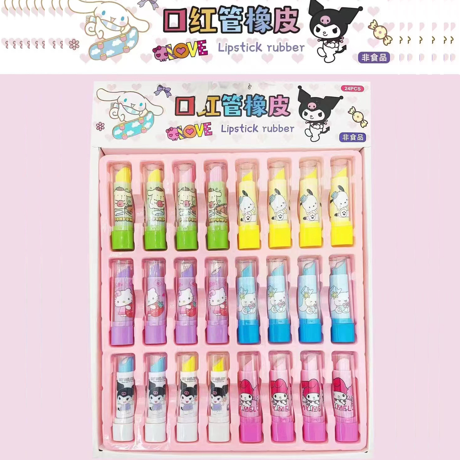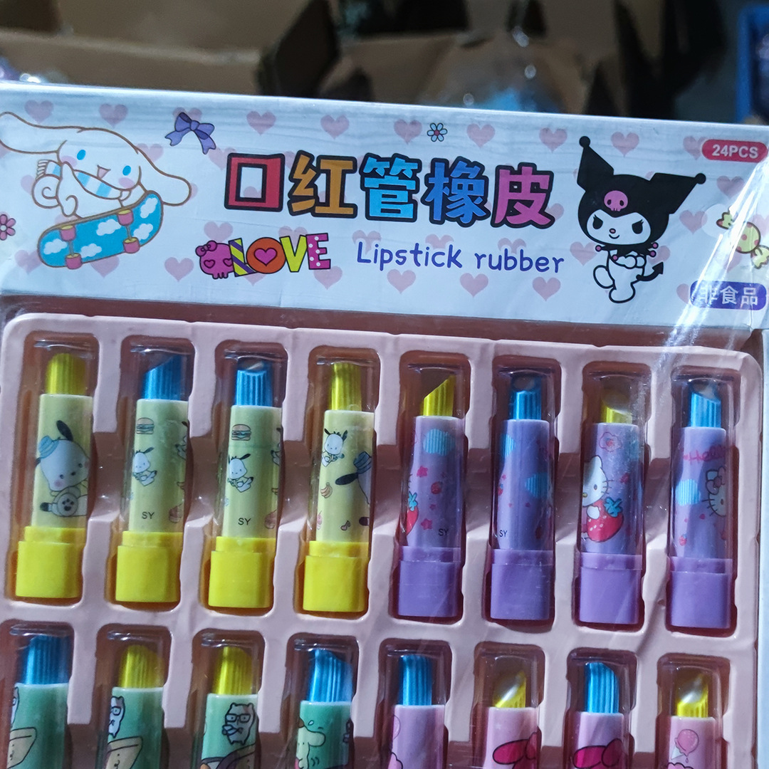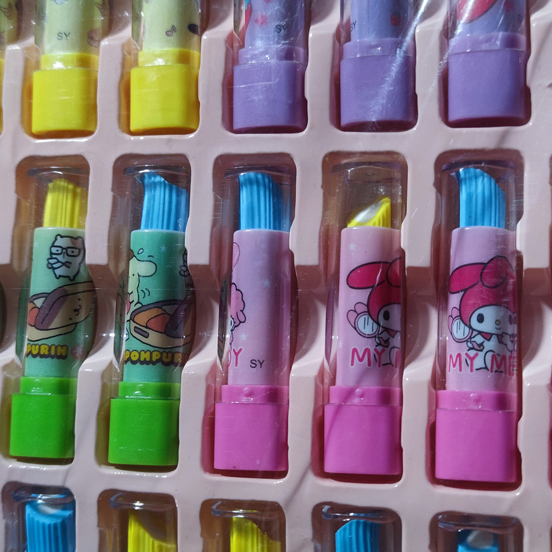 소매 1 위안 24 초등학교 립스틱 튜브 지우개 만화 창조적 인 고무 어린이 문구 명상