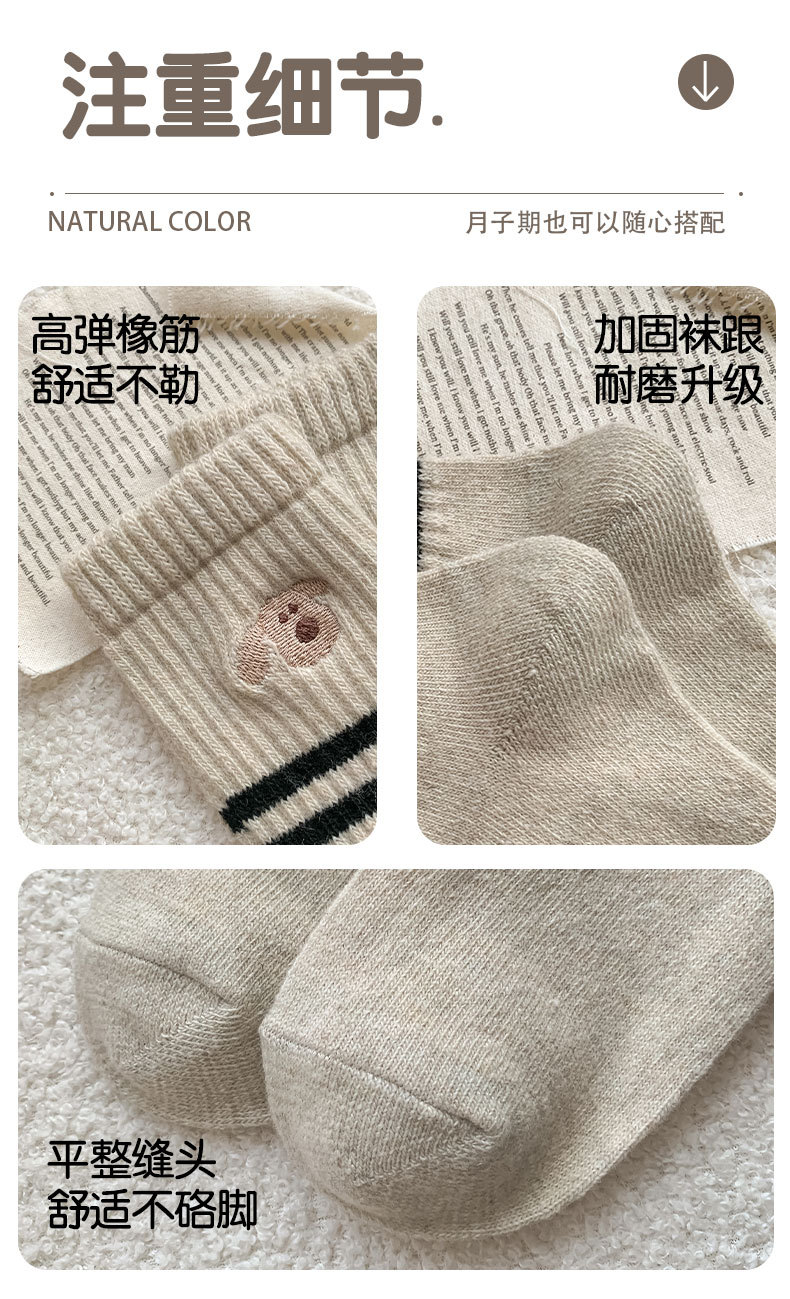 가을과 겨울의 어린이를위한 양모 양말 두꺼운 따뜻한 양말 일본 귀여운 개 자수 줄무늬 캐시미어 양말스토어 가기