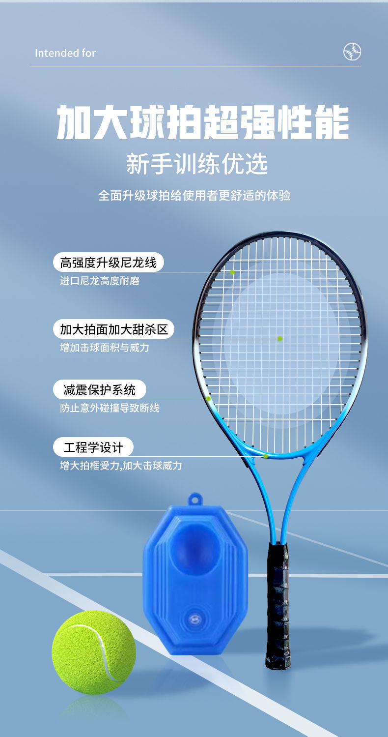 • 성인용 블루 라켓 [베이스 + 테니스 공 + 라켓 가방] 싱글 - 파손 보장 [이벤트 남은 29분]