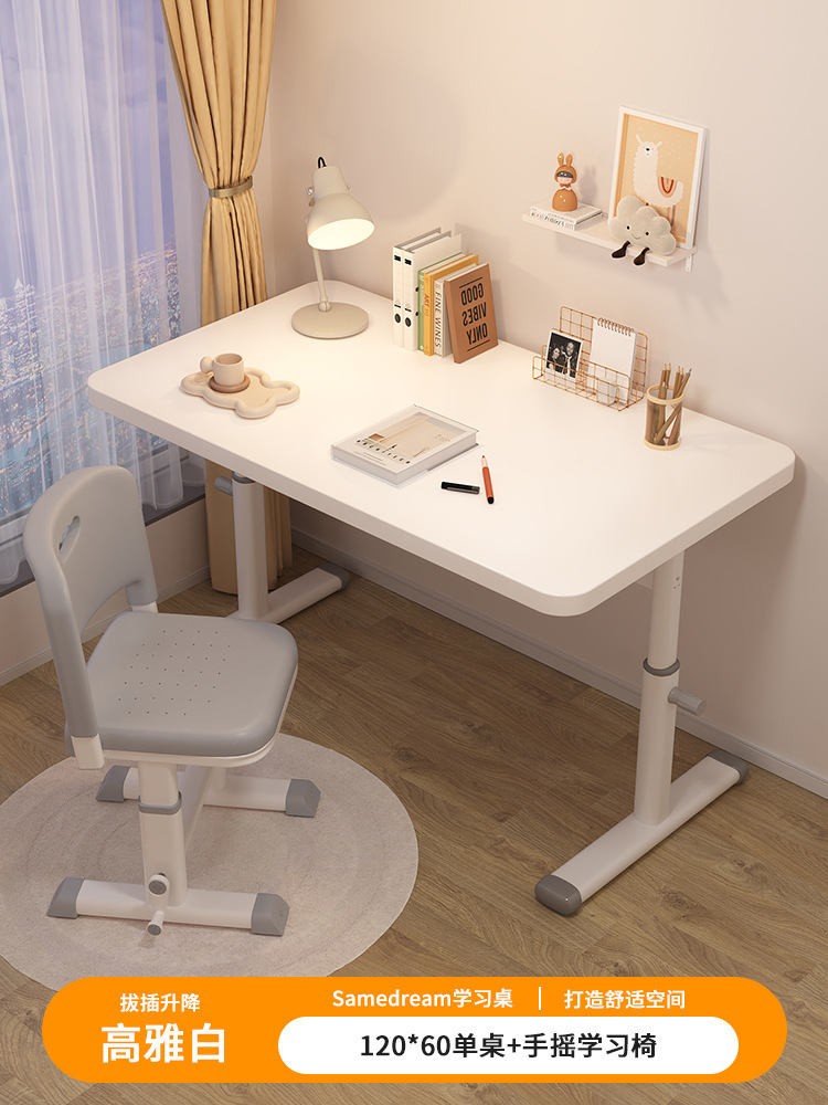• [우아한 화이트, 플러그인 리프팅] 120*60 싱글 테이블 + 핸드크랭크 스터디 체어