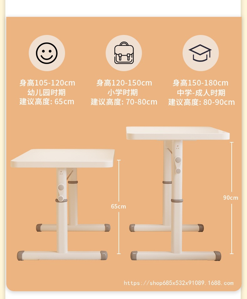 • [우아한 흰색 테이블과 의자 세트] 80*60 수동식 리프트 테이블 + 수동식 학습 의자