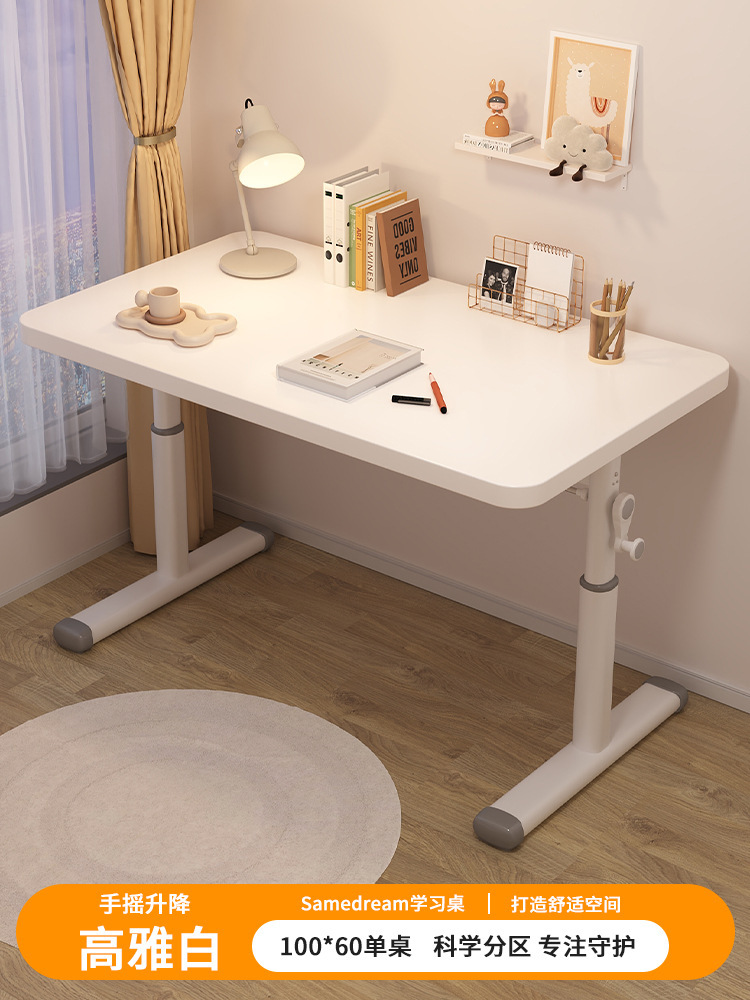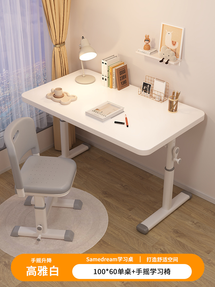 • [우아한 흰색 테이블과 의자 세트] 100*60 수동식 리프트 테이블 + 리프팅 학습 의자