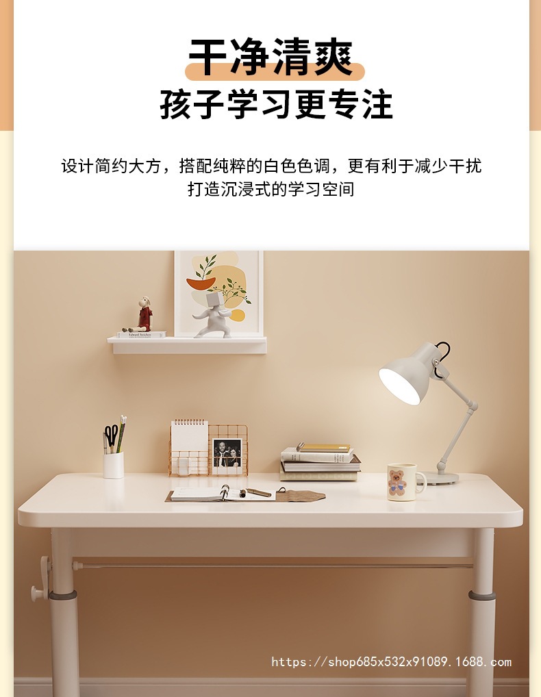 • [우아한 흰색 테이블과 의자 세트] 리프트 테이블이 없는 100*60 + 수동식 학습 의자
