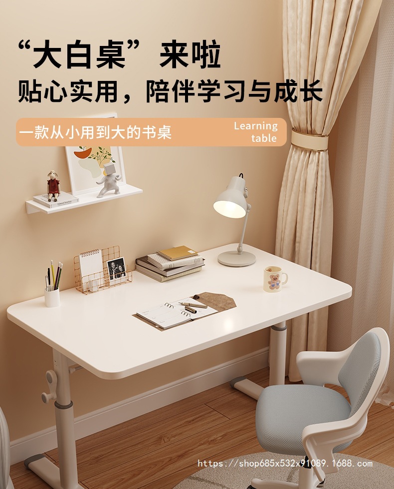 • [우아한 흰색 테이블과 의자 세트] 100*60 수동식 리프트 테이블 + 수동식 학습 의자