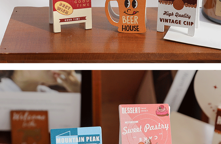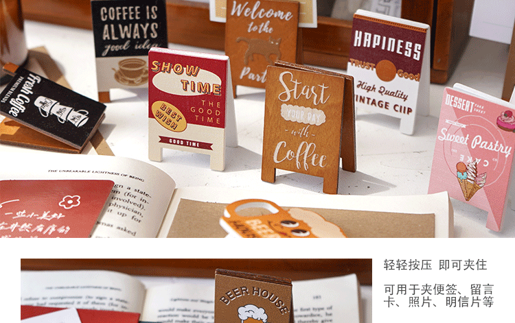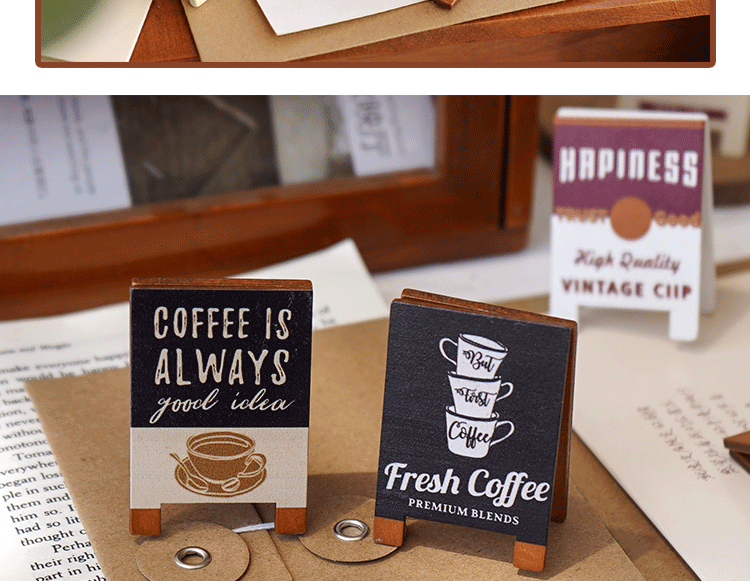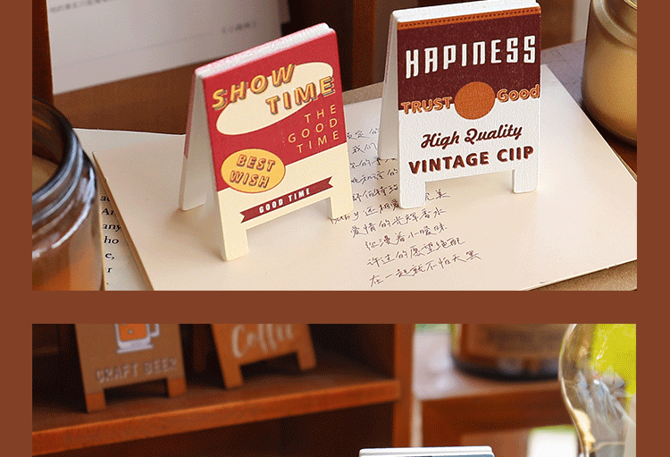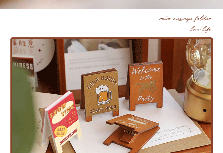 빈티지 시리즈 메시지 홀더 귀여운 나무 사진 홀더 데스크탑 장식품 창조적 인 메모 홀더 사무용품 명함 홀더
