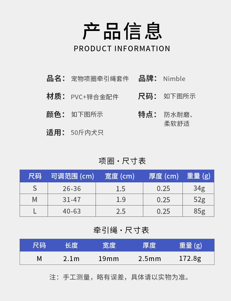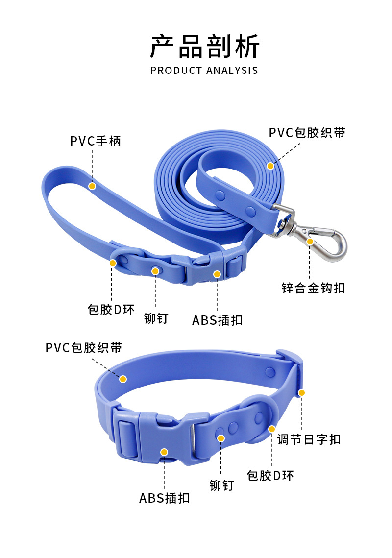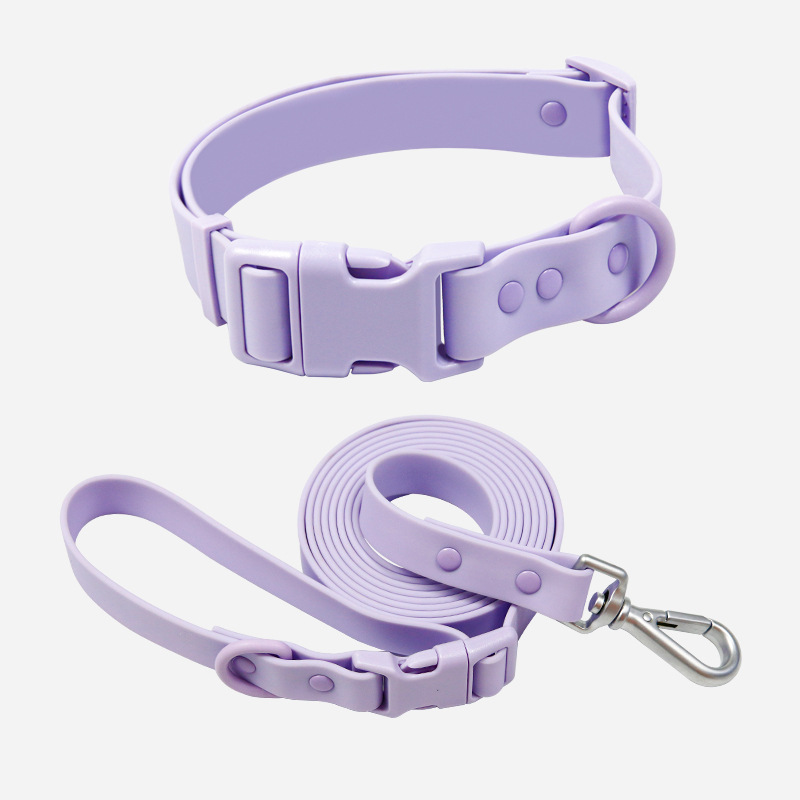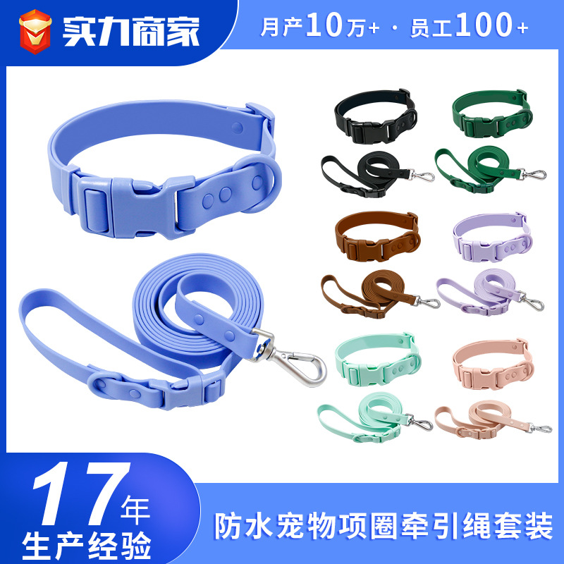 다양한 종류의 개에 적합한 맞춤형 애완 동물 PVC 목걸이 가죽 끈 세트 방수 및 내마모성 마카롱 컬러 세트스토어 가기