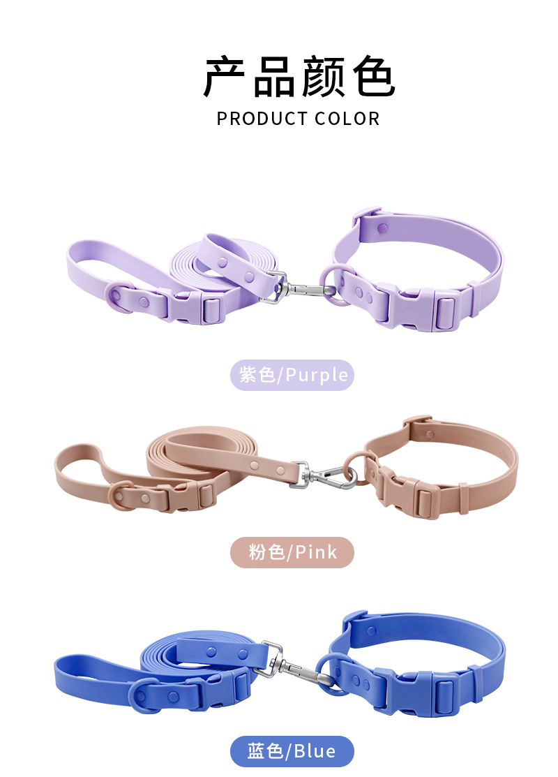 다양한 종류의 개에 적합한 맞춤형 애완 동물 PVC 목걸이 가죽 끈 세트 방수 및 내마모성 마카롱 컬러 세트