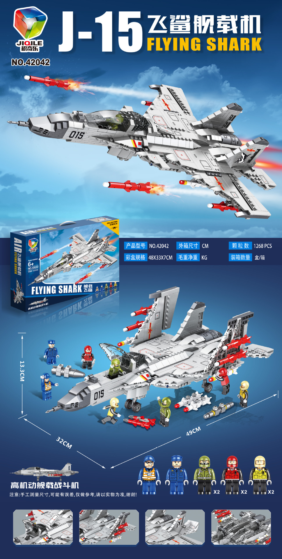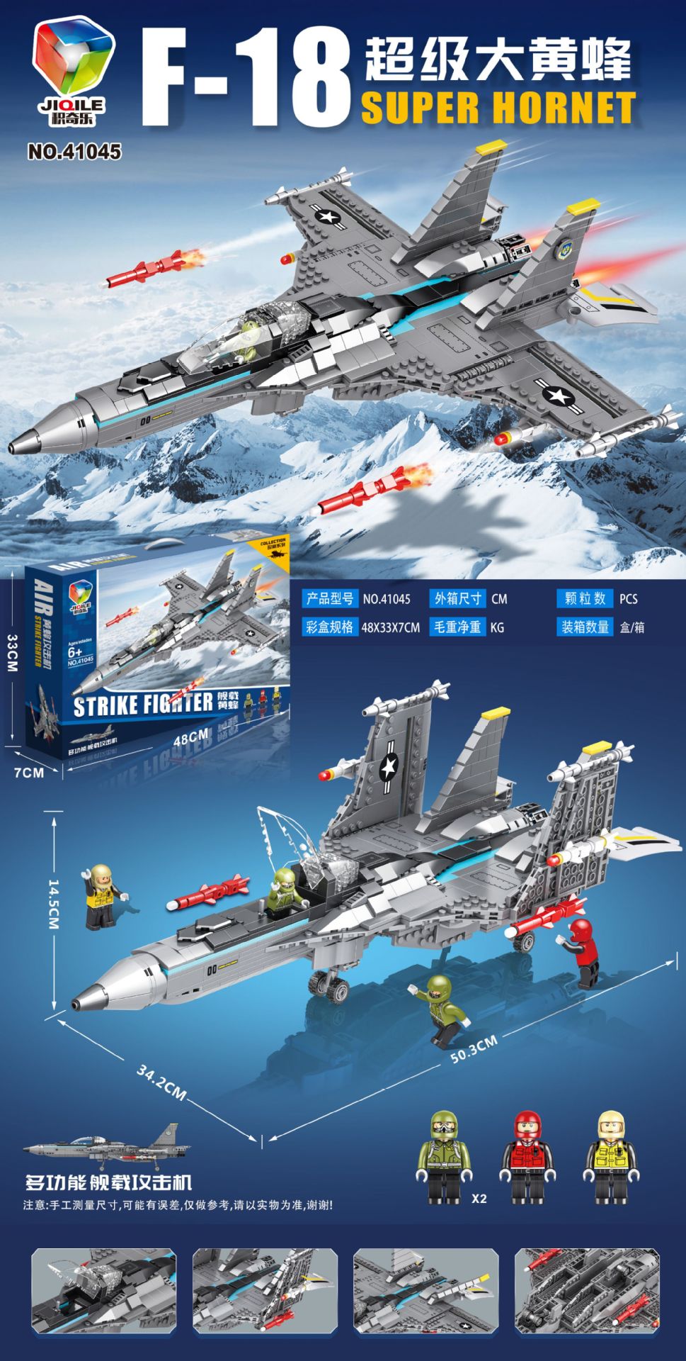 • 미니피겨 4개-F15 블루호크 전투기 1268개 [48cm 선물상자]