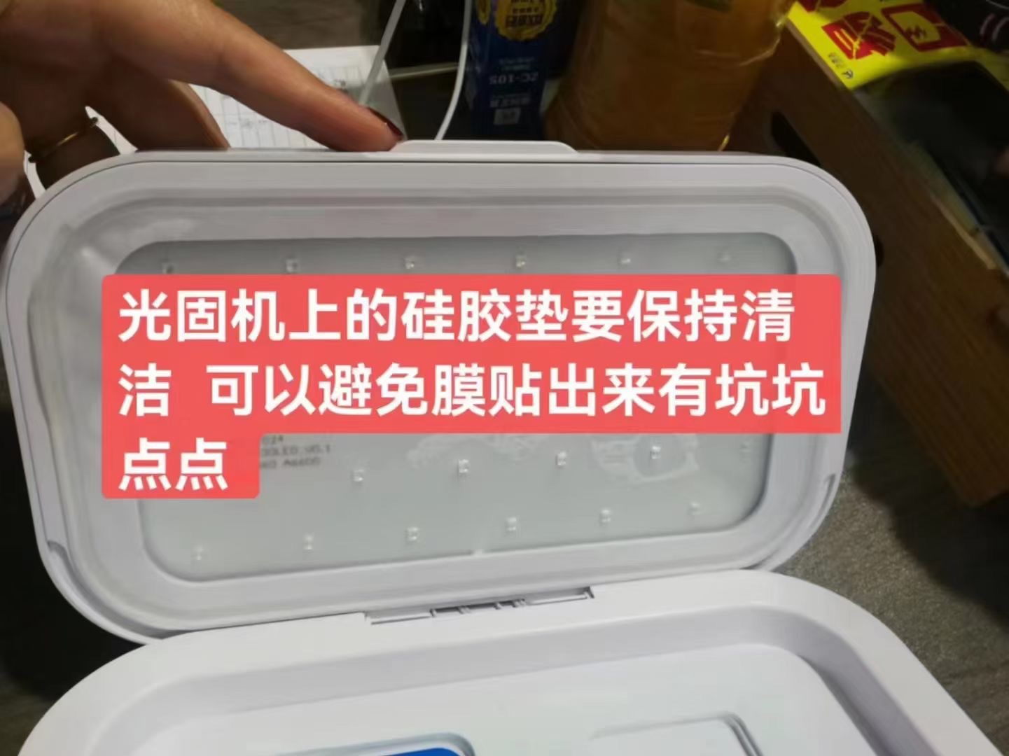 温馨提示:光固贴膜机随着使用时间次数增多,内部密封硅胶皮垫上会吸附灰尘,时间越长灰尘越多,会造成贴膜完毕后手机屏幕有规则的凹点,解决方式跟换密封硅胶皮或者定期清洁硅胶皮表面!