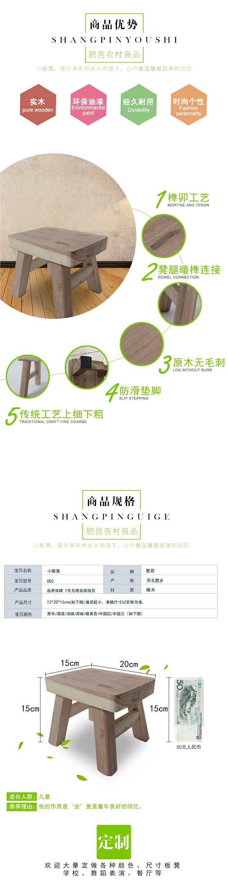 Feiyi 어린이 작은 벤치 단단한 나무 아기 의자 어린이 나무 벤치 춤 스톨 신발 변경 의자 발 패드 낮은 의자스토어 가기