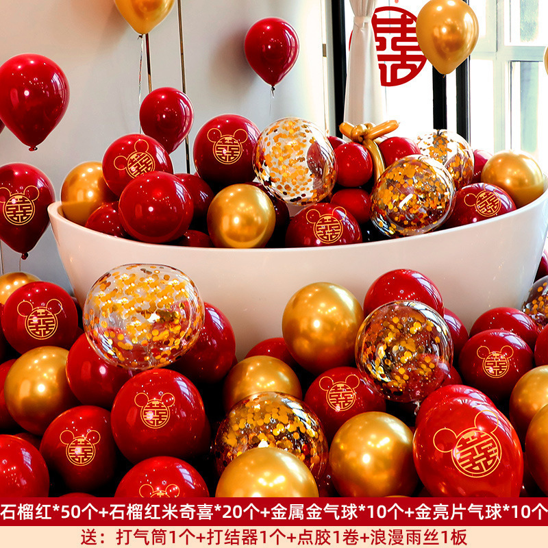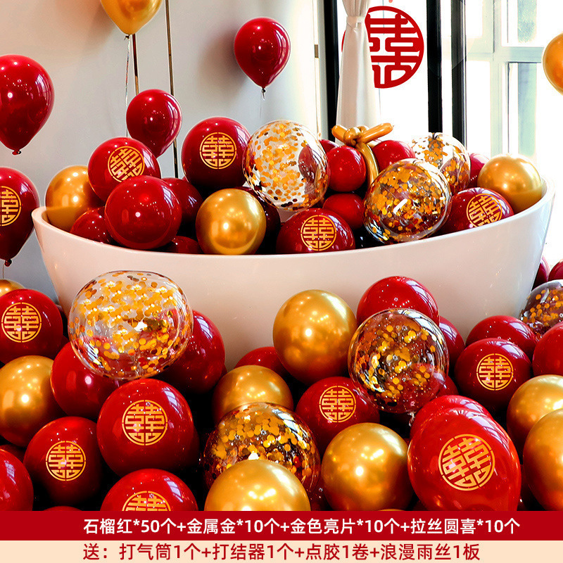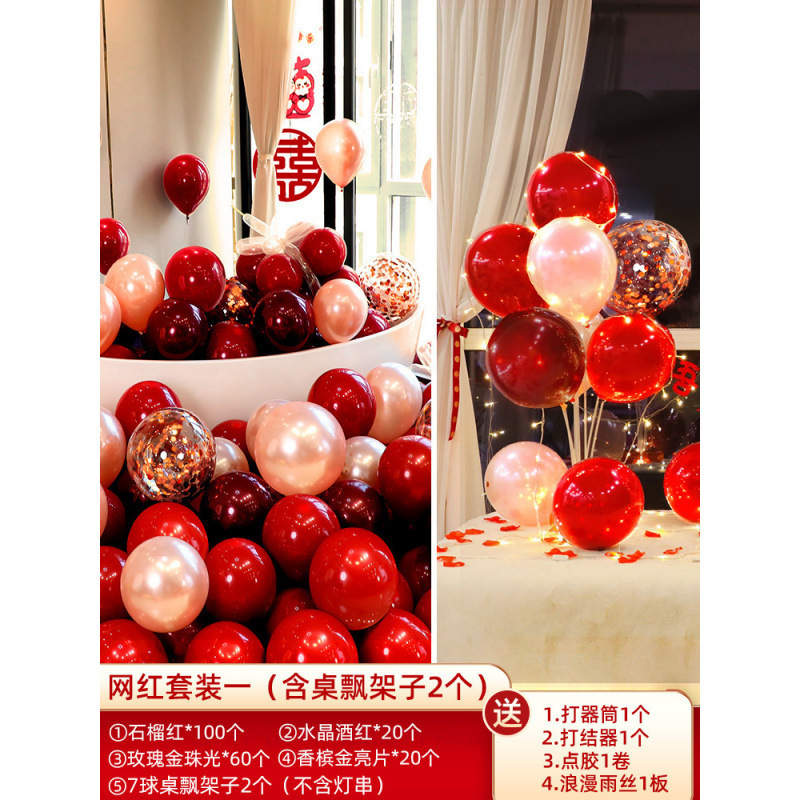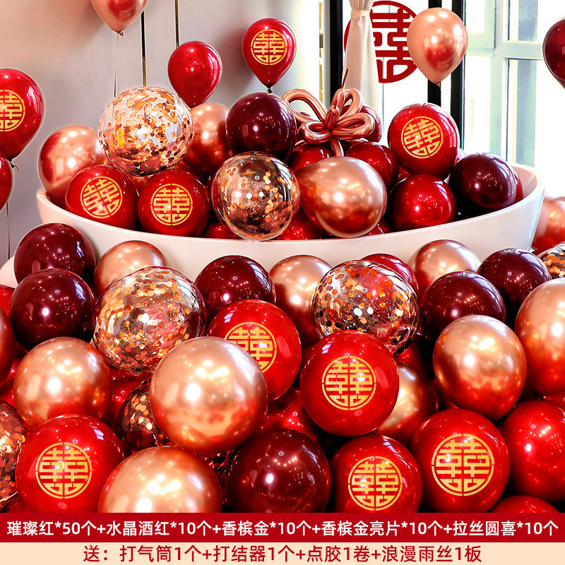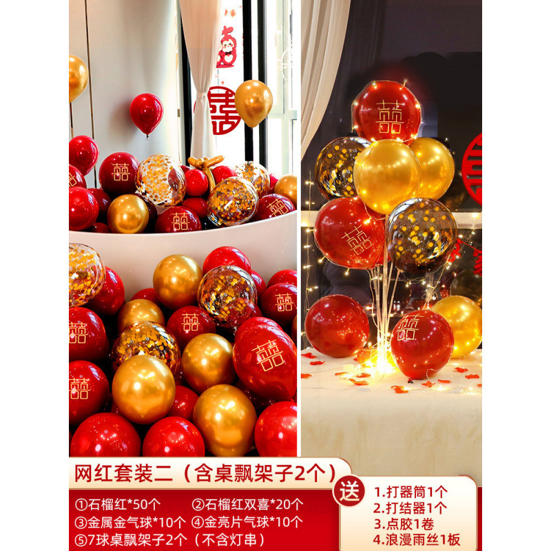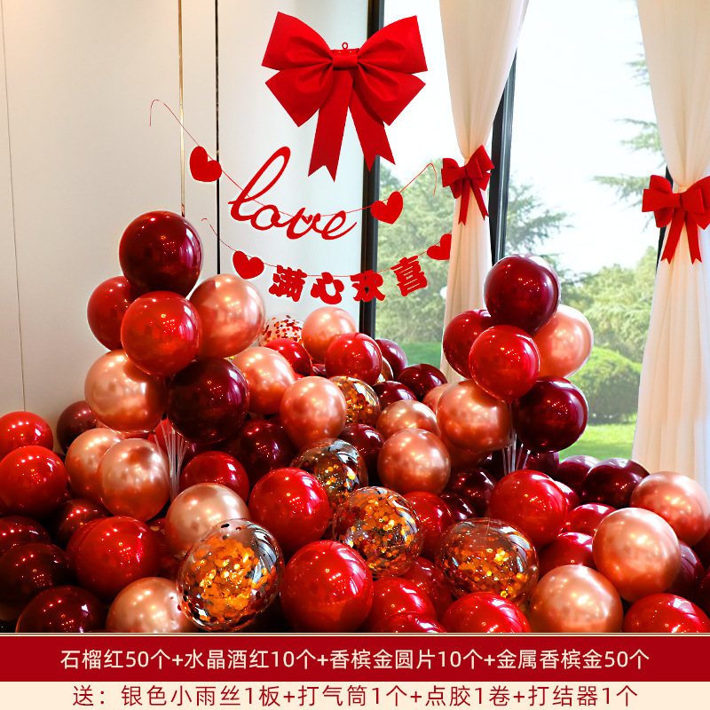 풍선 결혼식 준비 세트 결혼식 여자 침실 장면 빨간 결혼식 용품 백과 사전 약혼 결혼식 장 샤오