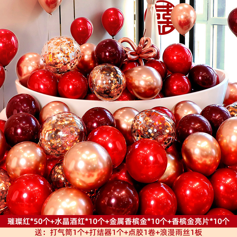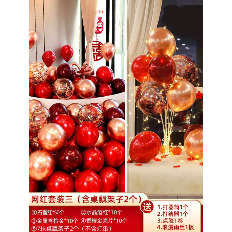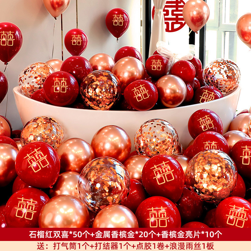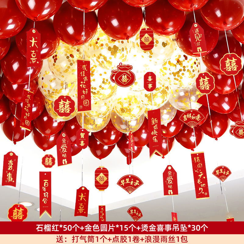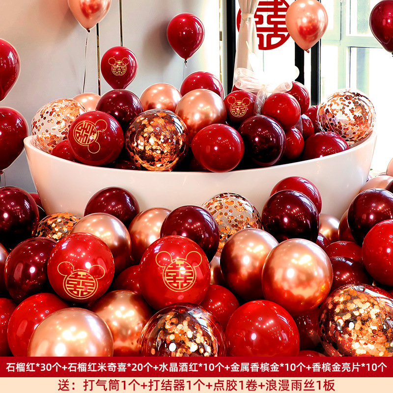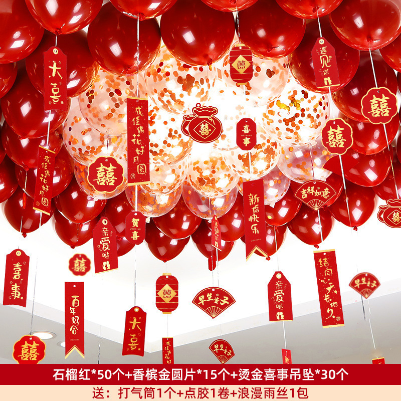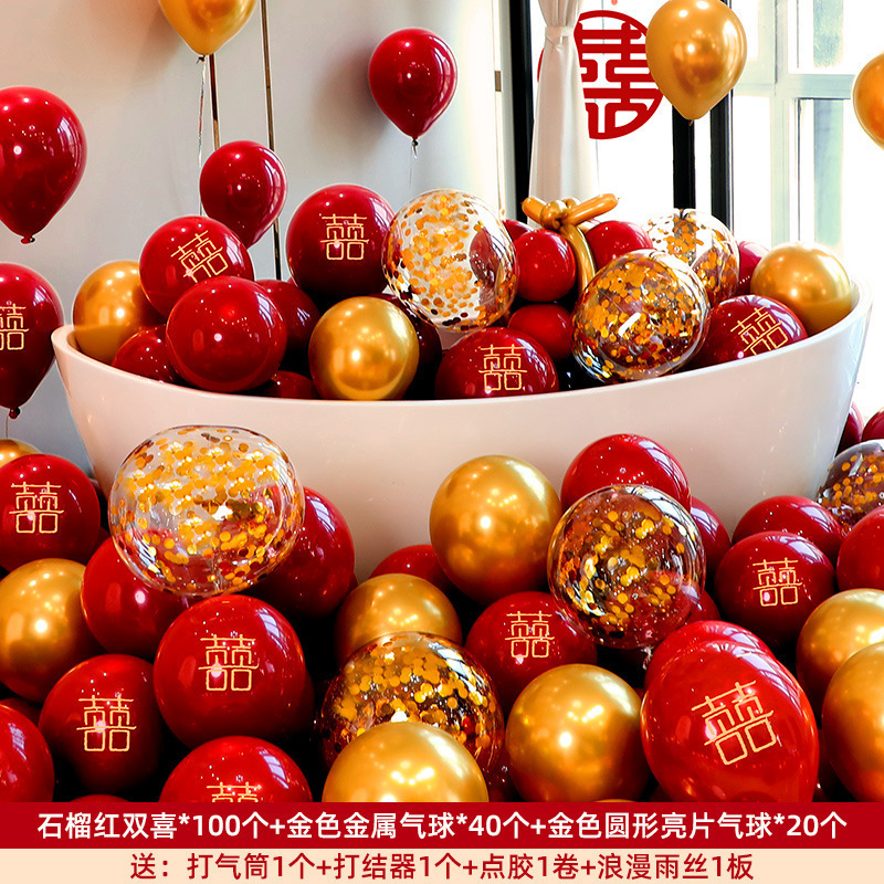 풍선 결혼식 준비 세트 결혼식 여자 침실 장면 빨간 결혼식 용품 백과 사전 약혼 결혼식 장 샤오