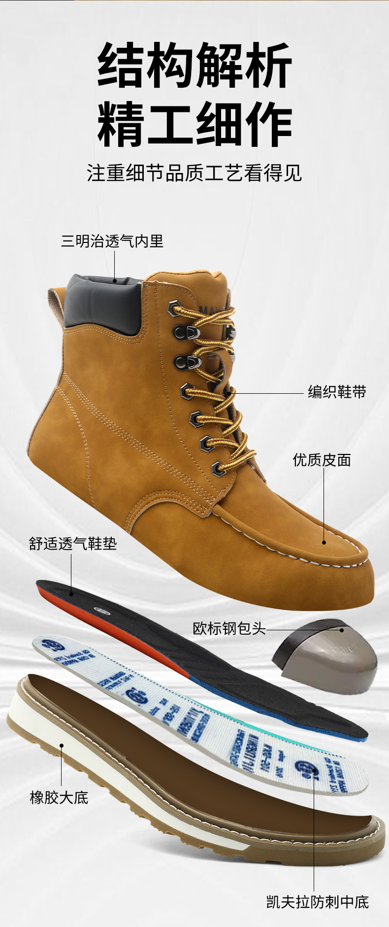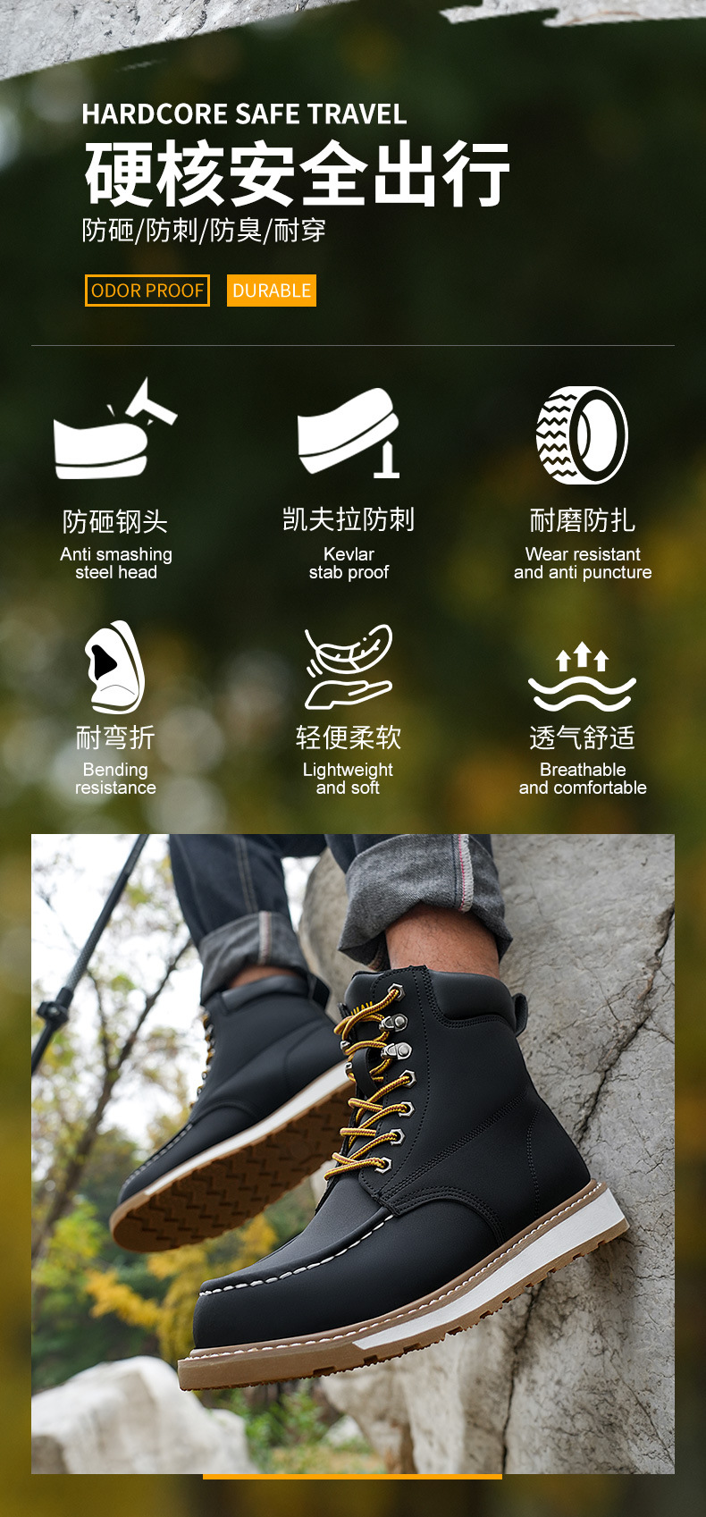 남성용 노동 보호 신발, 탈취, 통기성, 충격 방지, 펑크 방지, 내마모성, 작업용 강철 발가락 캡, 강철 플레이트, 안전을 위한 하이탑 신발