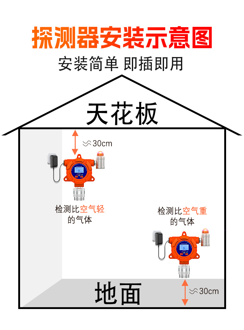 독립적 인 플러그인 사용 산업 가연성 가스 경보 산소 암모니아 황화수소 가스 파괴 농도 검출기스토어 가기