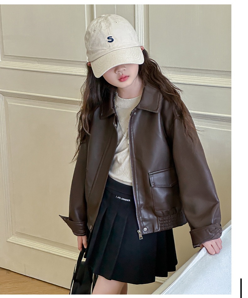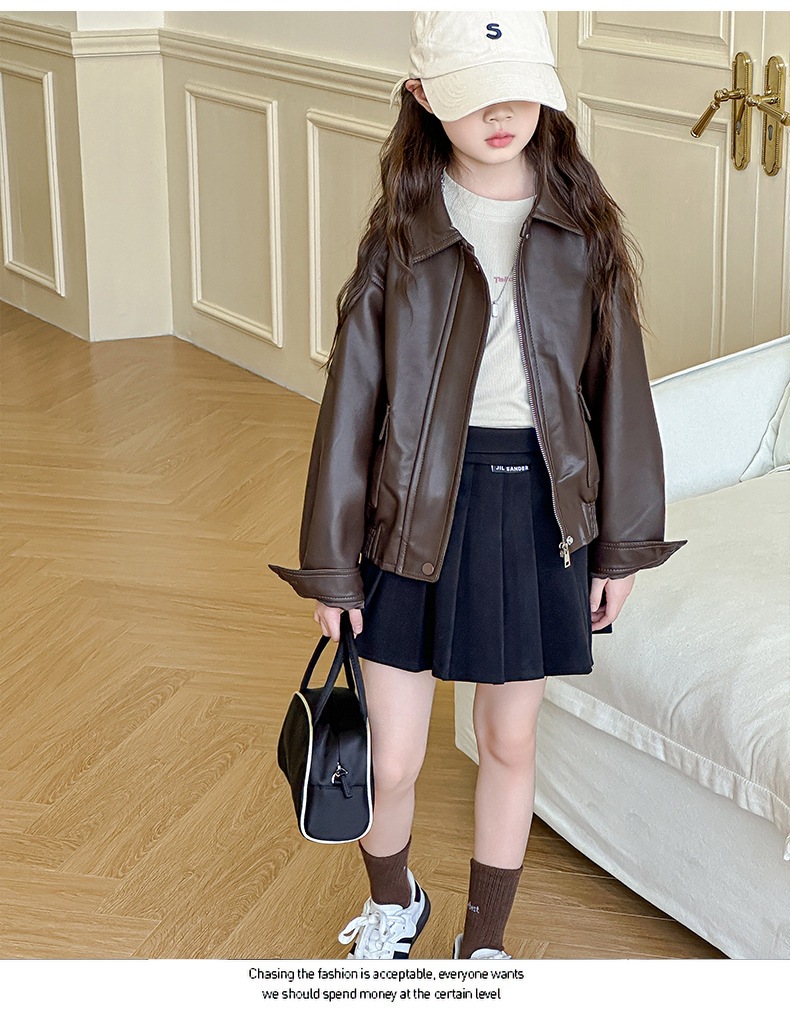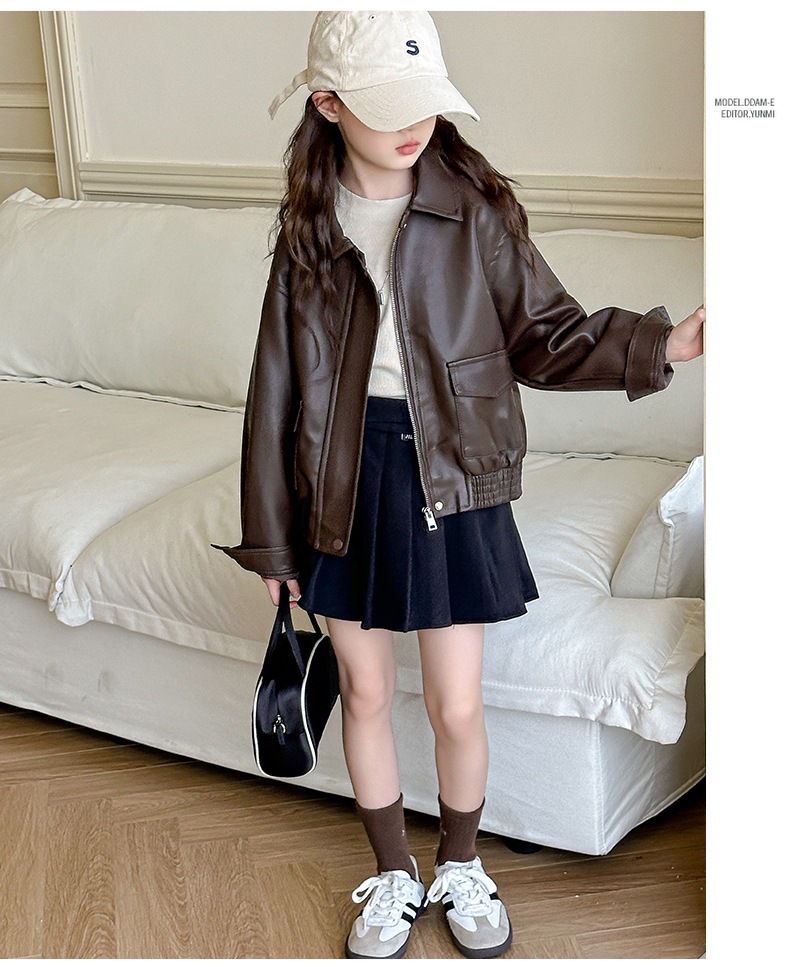 소녀 기모 가죽 코트 가을과 겨울 멋진 가죽 PU 재킷 어린이 서양식 가을 2024 새로운 유행 가죽 자켓