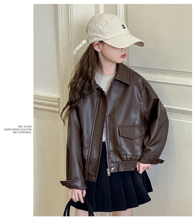 소녀 기모 가죽 코트 가을과 겨울 멋진 가죽 PU 재킷 어린이 서양식 가을 2024 새로운 유행 가죽 자켓스토어 가기