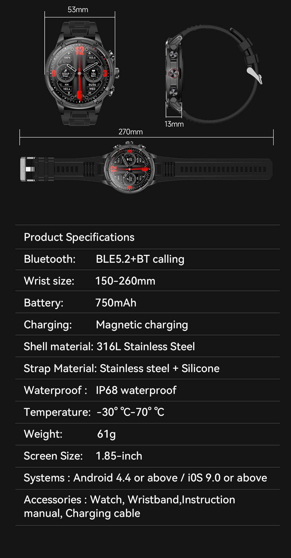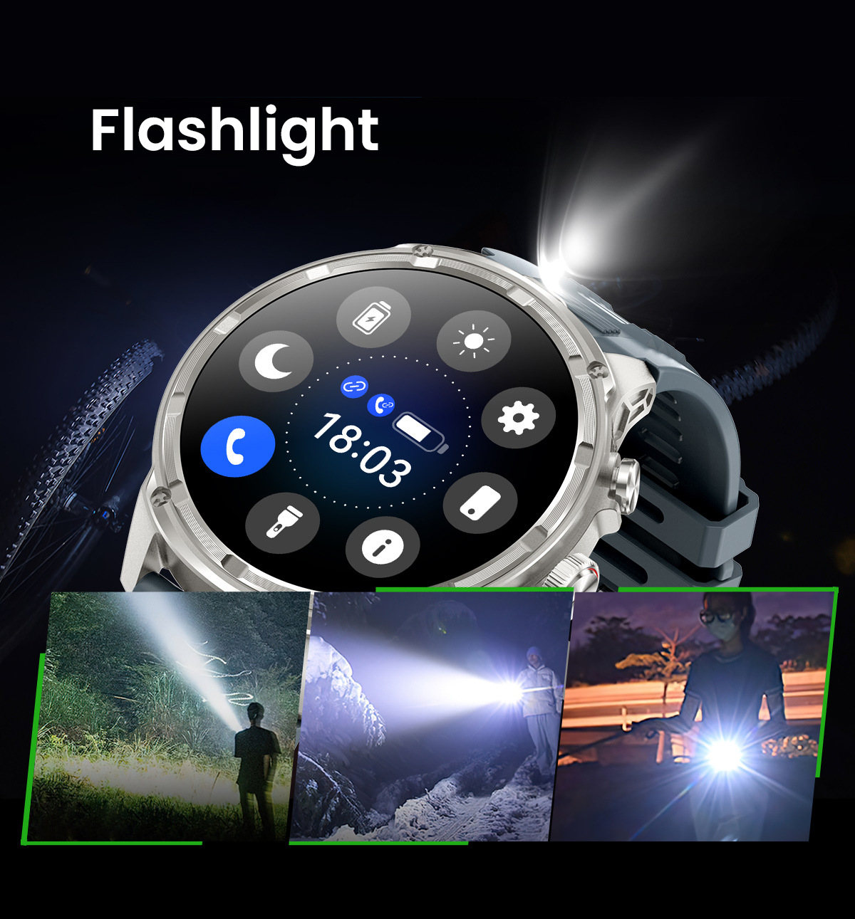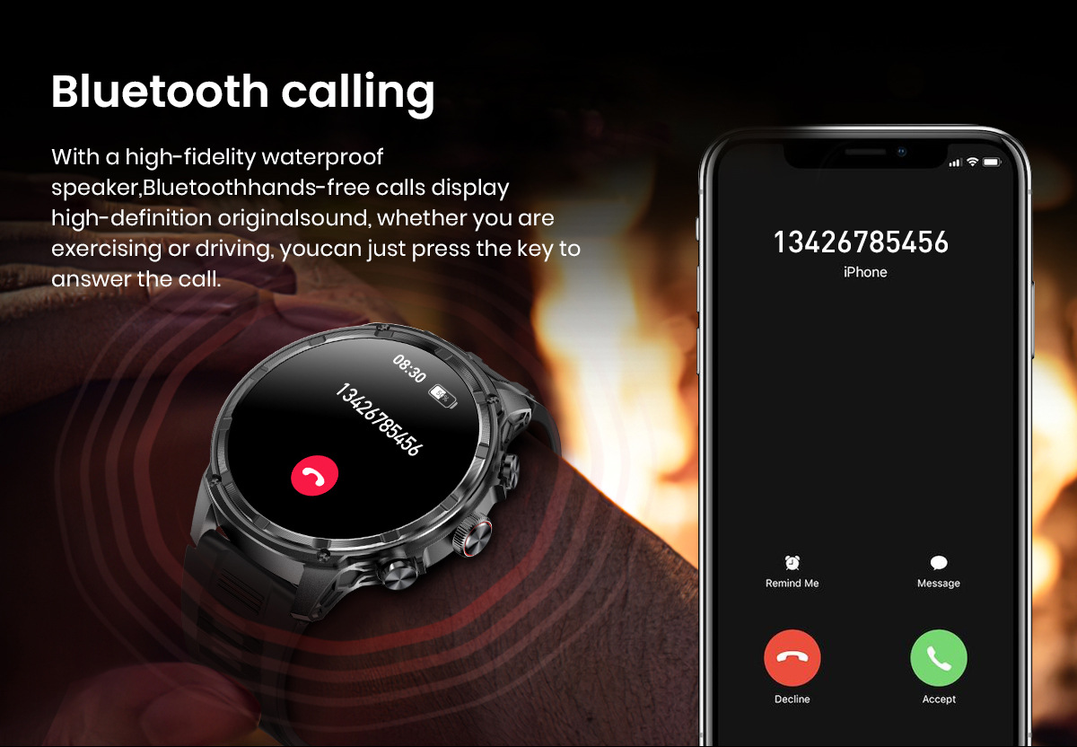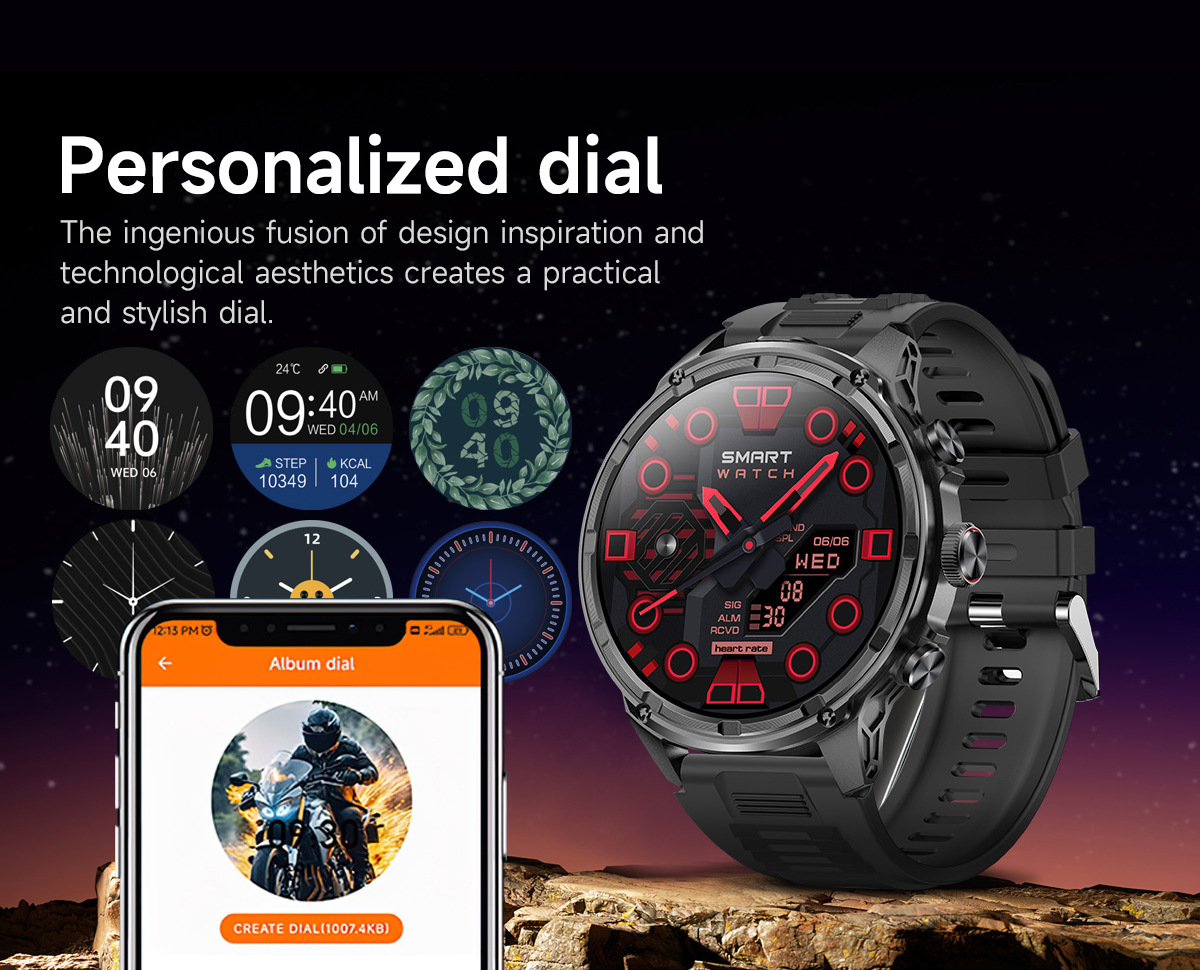 새로운 Rogbid 탱크 M5 Ultra1.85 인치 대형 스크린 블루투스 전화 LED 손전등 스마트 시계