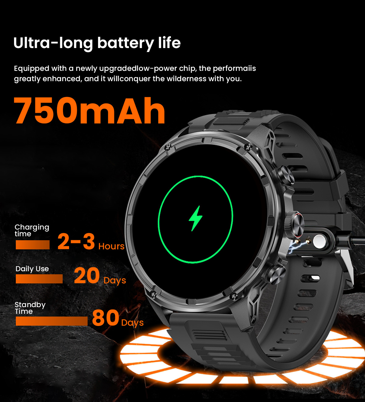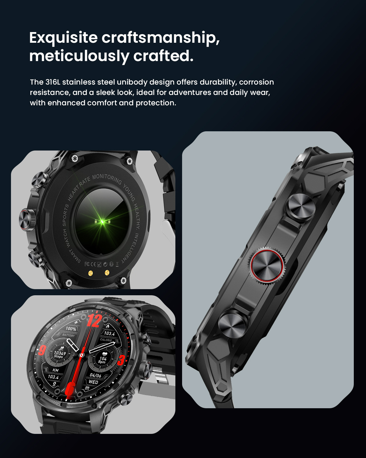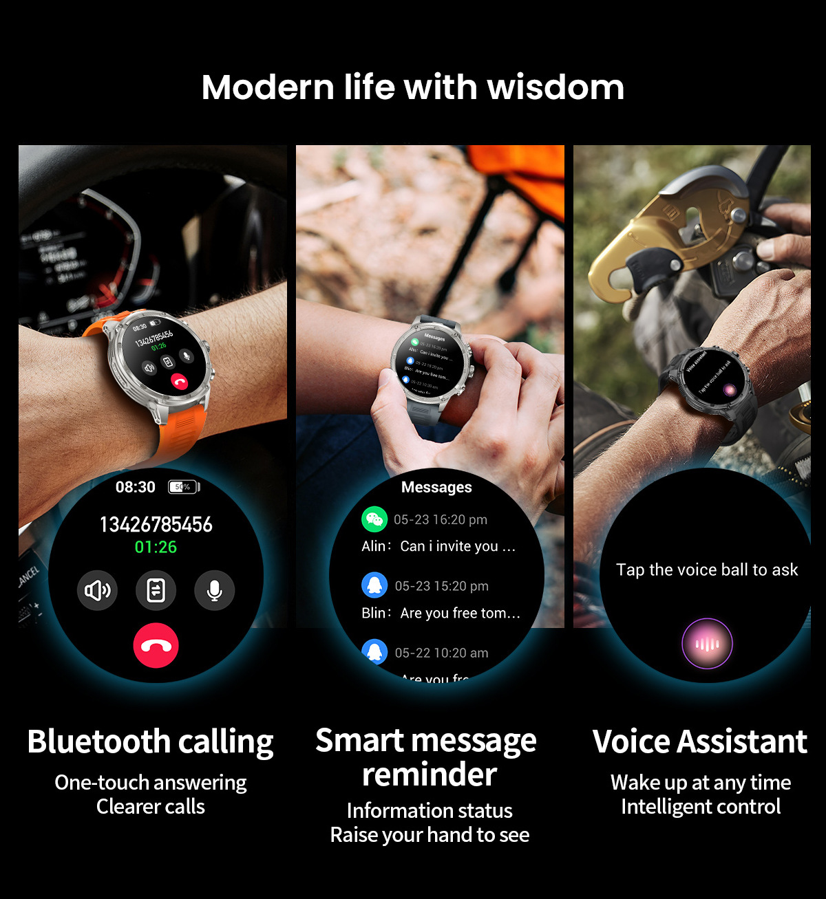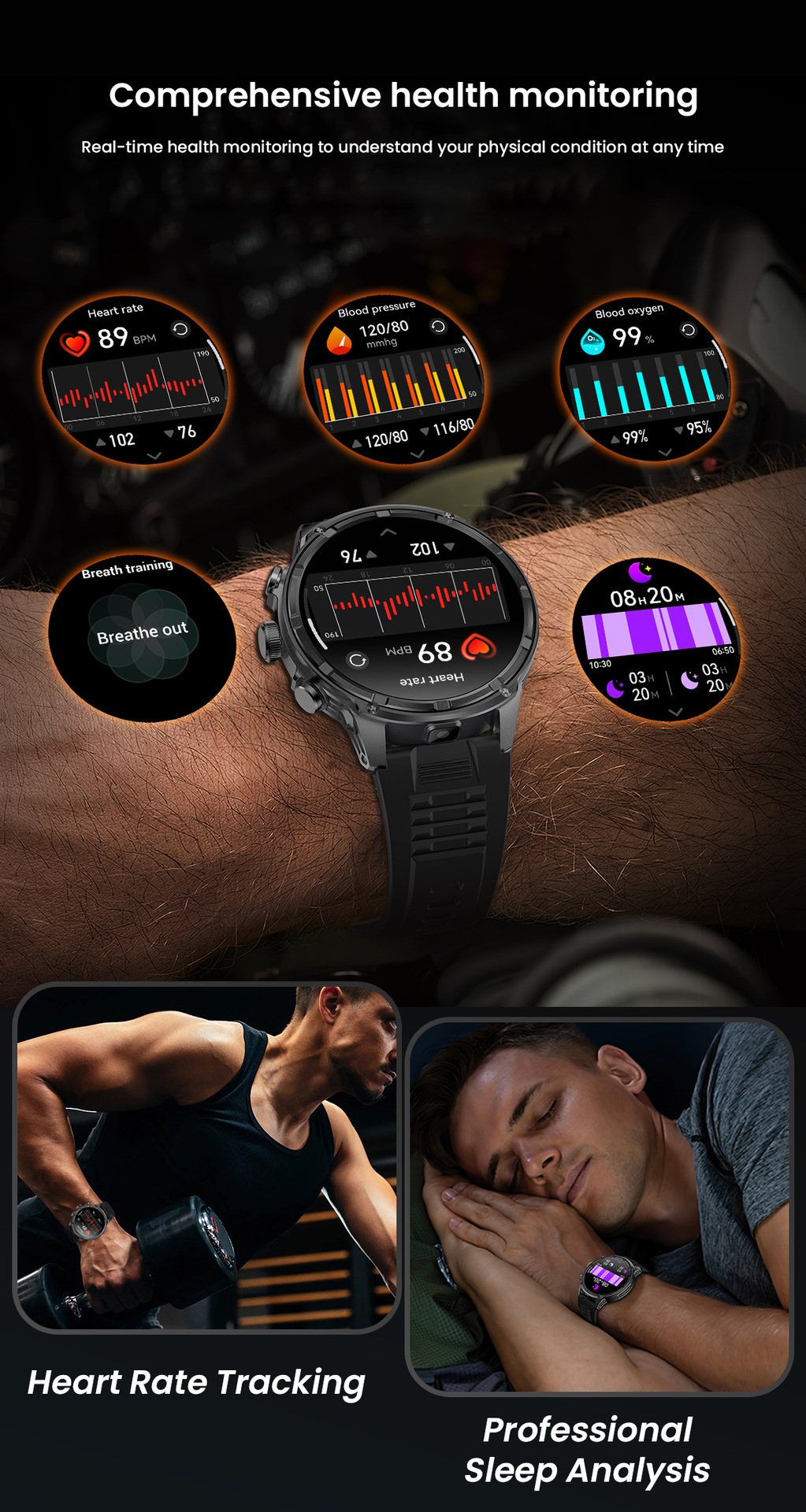 새로운 Rogbid 탱크 M5 Ultra1.85 인치 대형 스크린 블루투스 전화 LED 손전등 스마트 시계