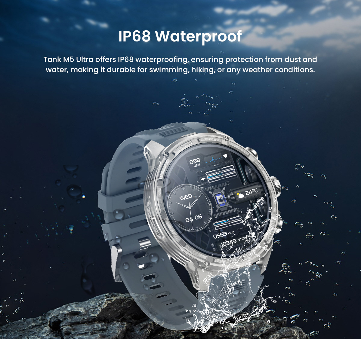 새로운 Rogbid 탱크 M5 Ultra1.85 인치 대형 스크린 블루투스 전화 LED 손전등 스마트 시계스토어 가기