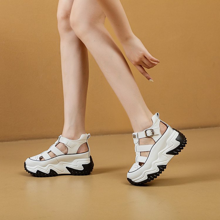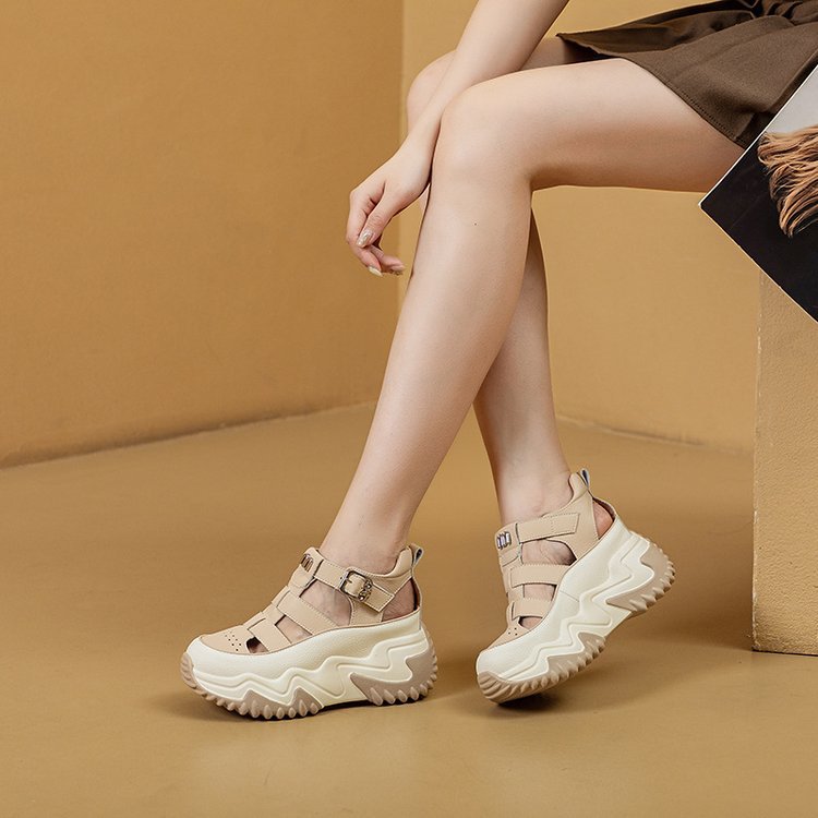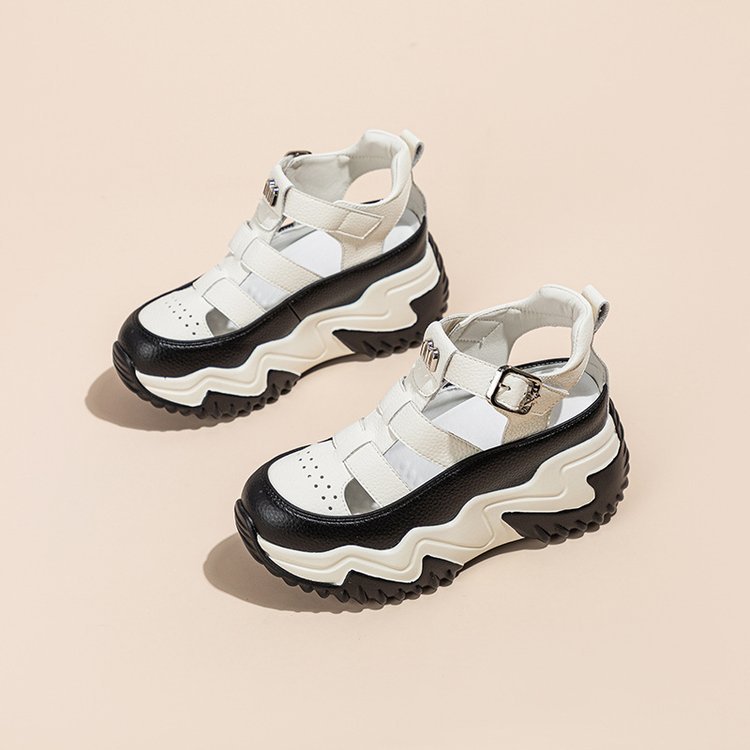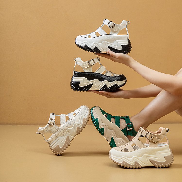 통기성 악어 신발 여성 2025 봄과 여름 내부 고조 작은 중공 샌들 한국 스타일 슬리밍 컬러 매칭 캐주얼 신발스토어 가기