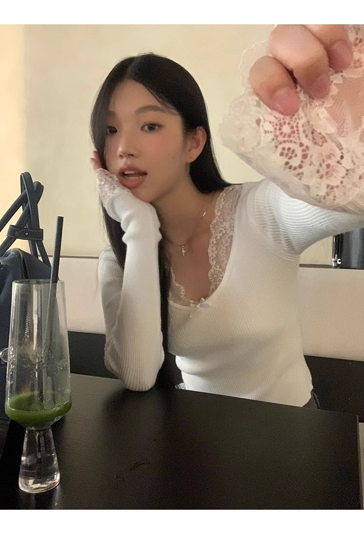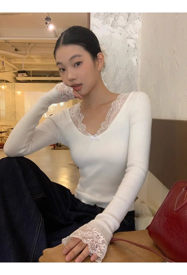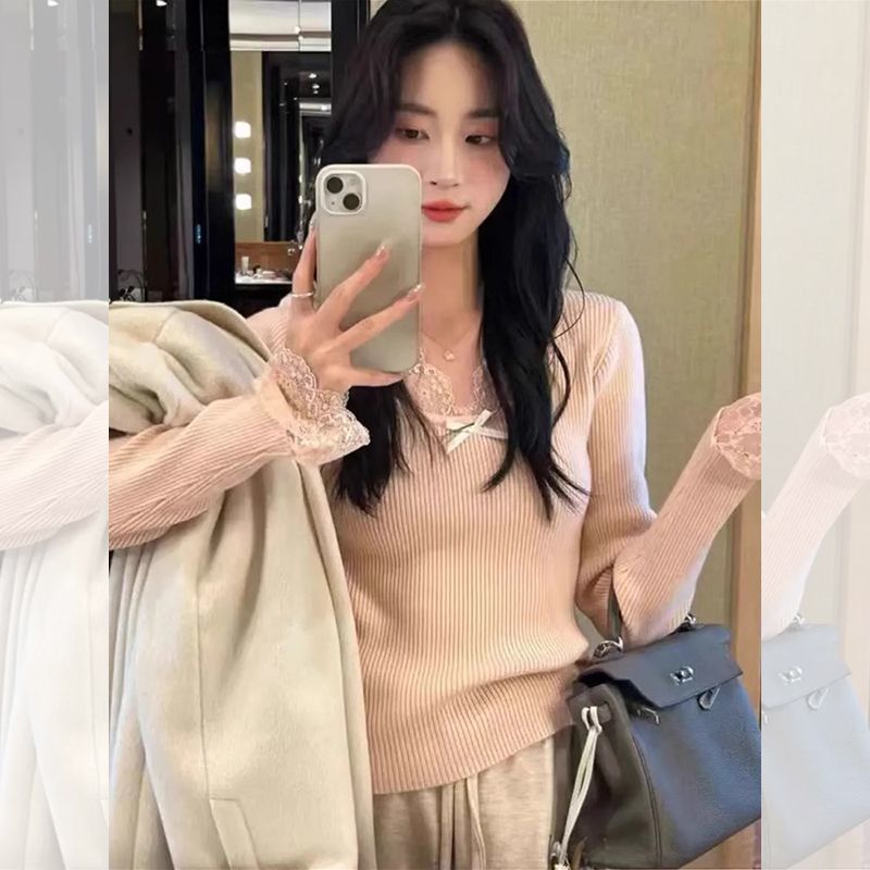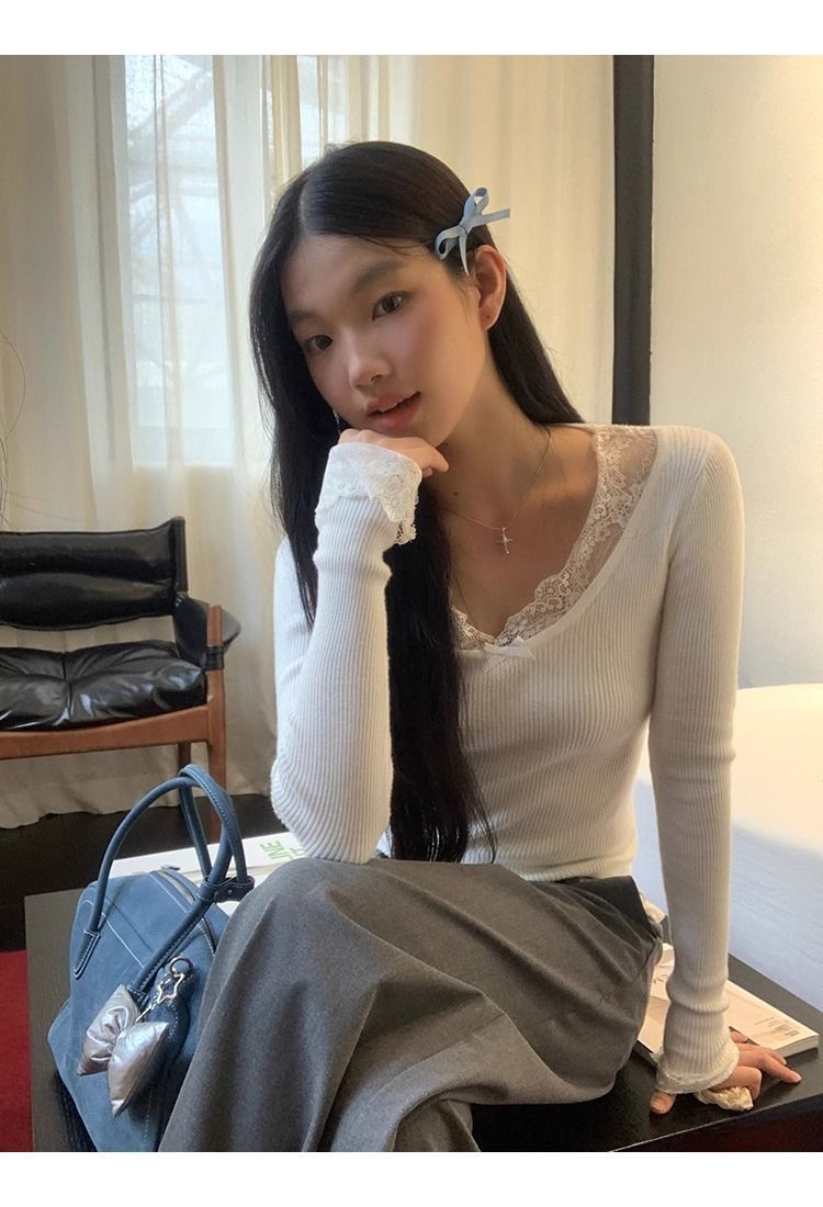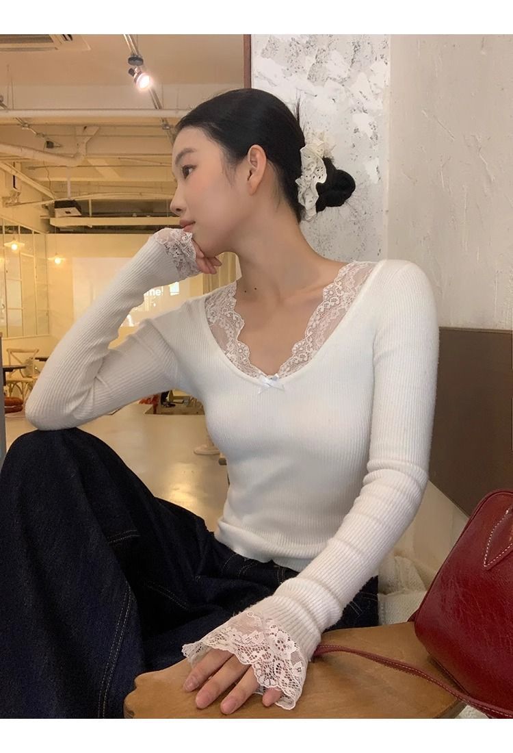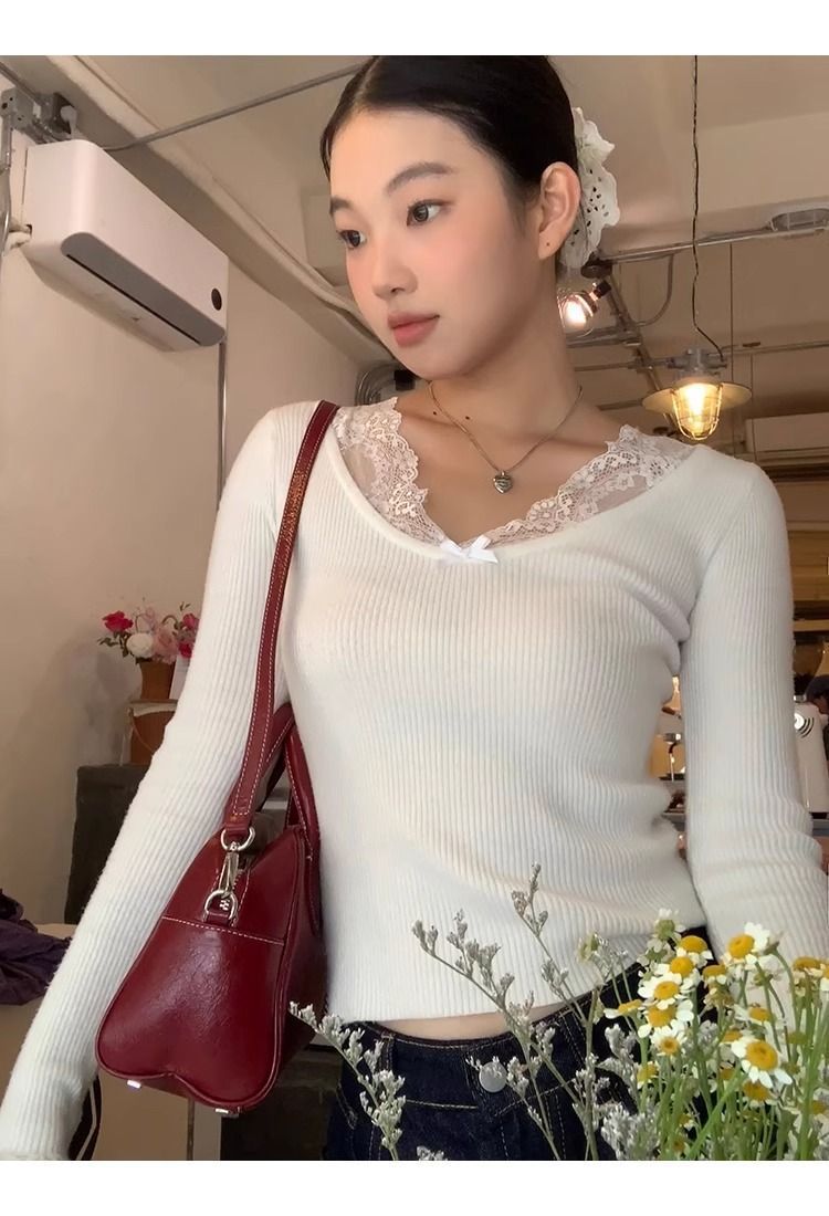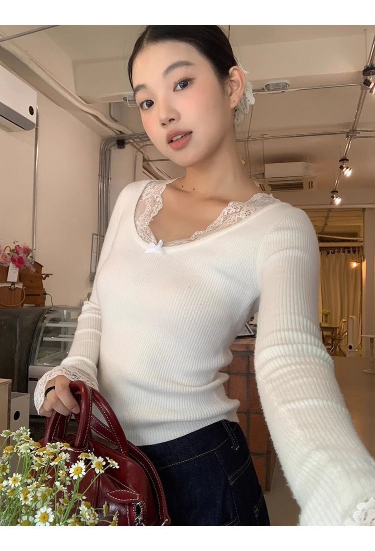 순수한 욕망 스타일 화이트 스웨터 여성의 봄과 가을 긴 소매 탑 게으른 하이 엔드 터틀넥 레트로 레이스 니트 스웨터스토어 가기