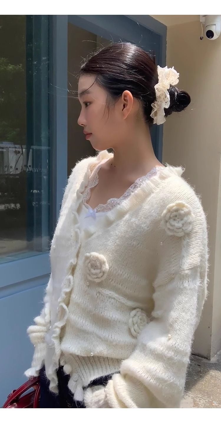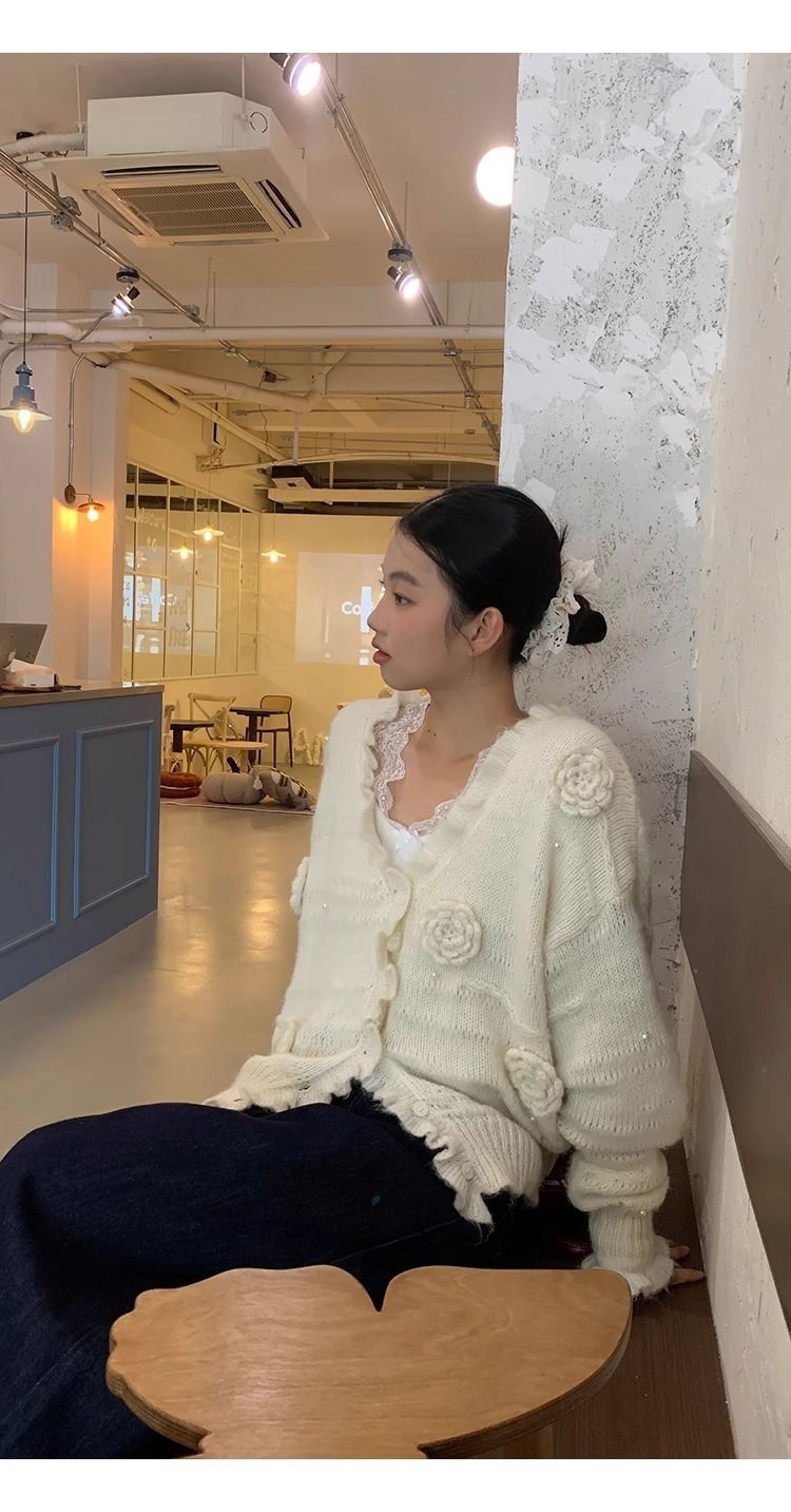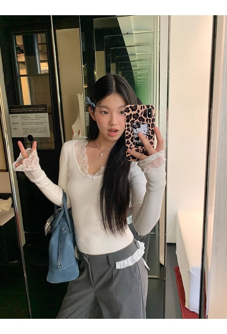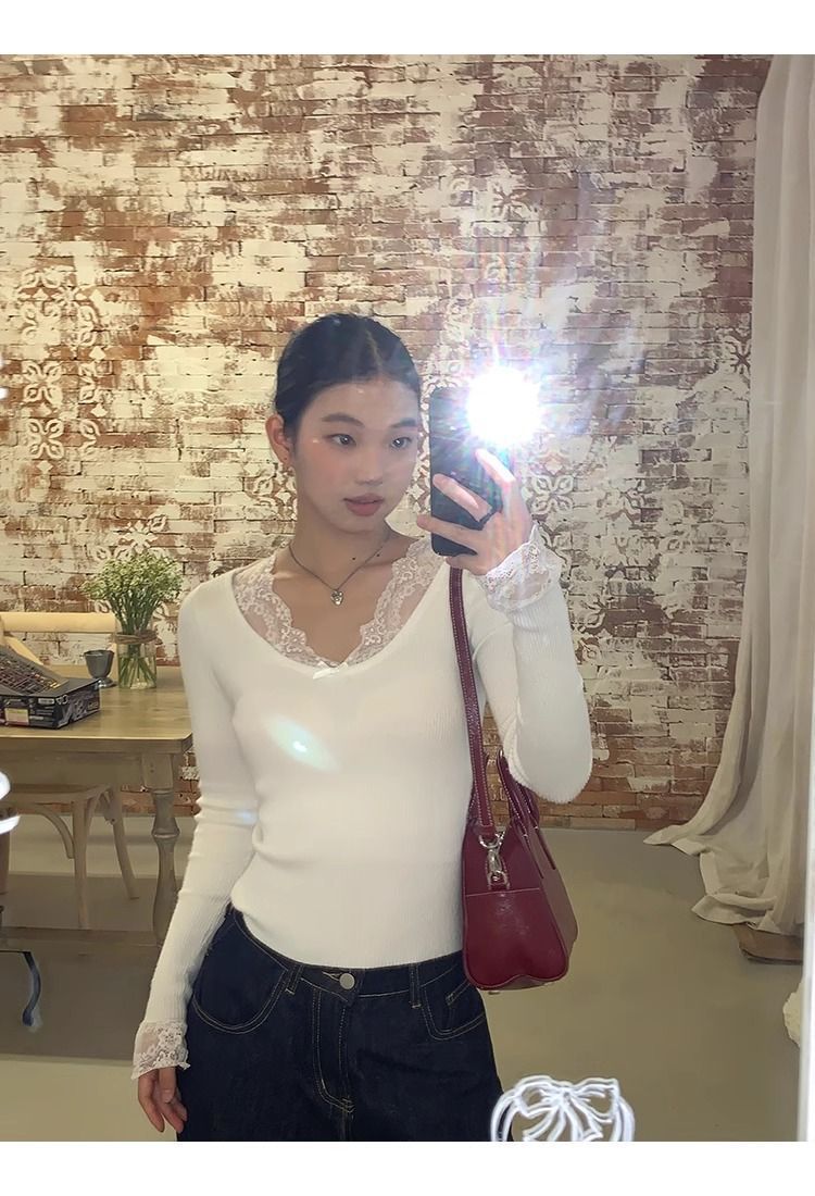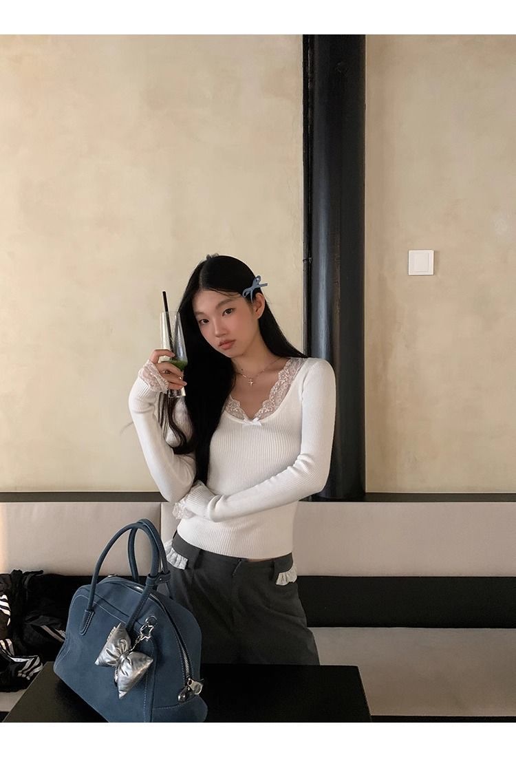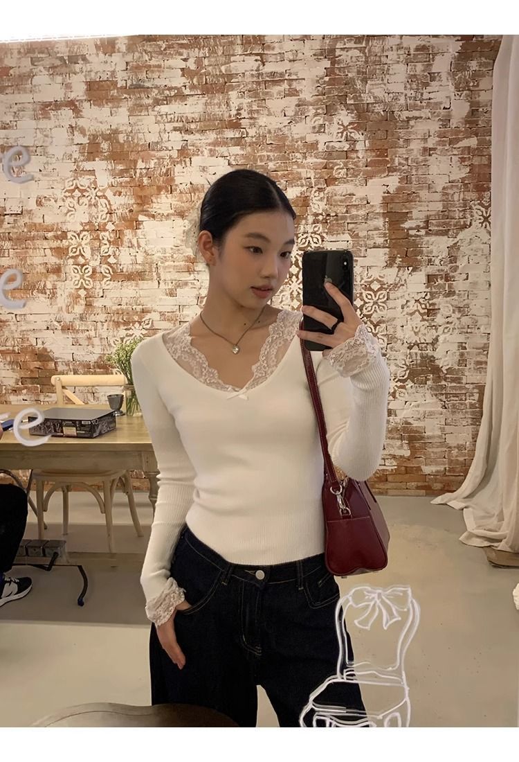 순수한 욕망 스타일 화이트 스웨터 여성의 봄과 가을 긴 소매 탑 게으른 하이 엔드 터틀넥 레트로 레이스 니트 스웨터스토어 가기