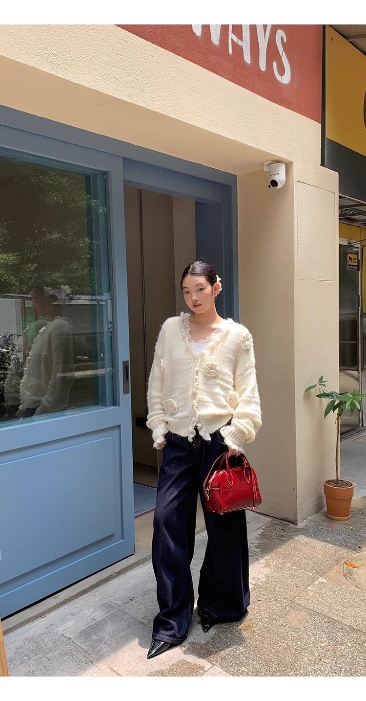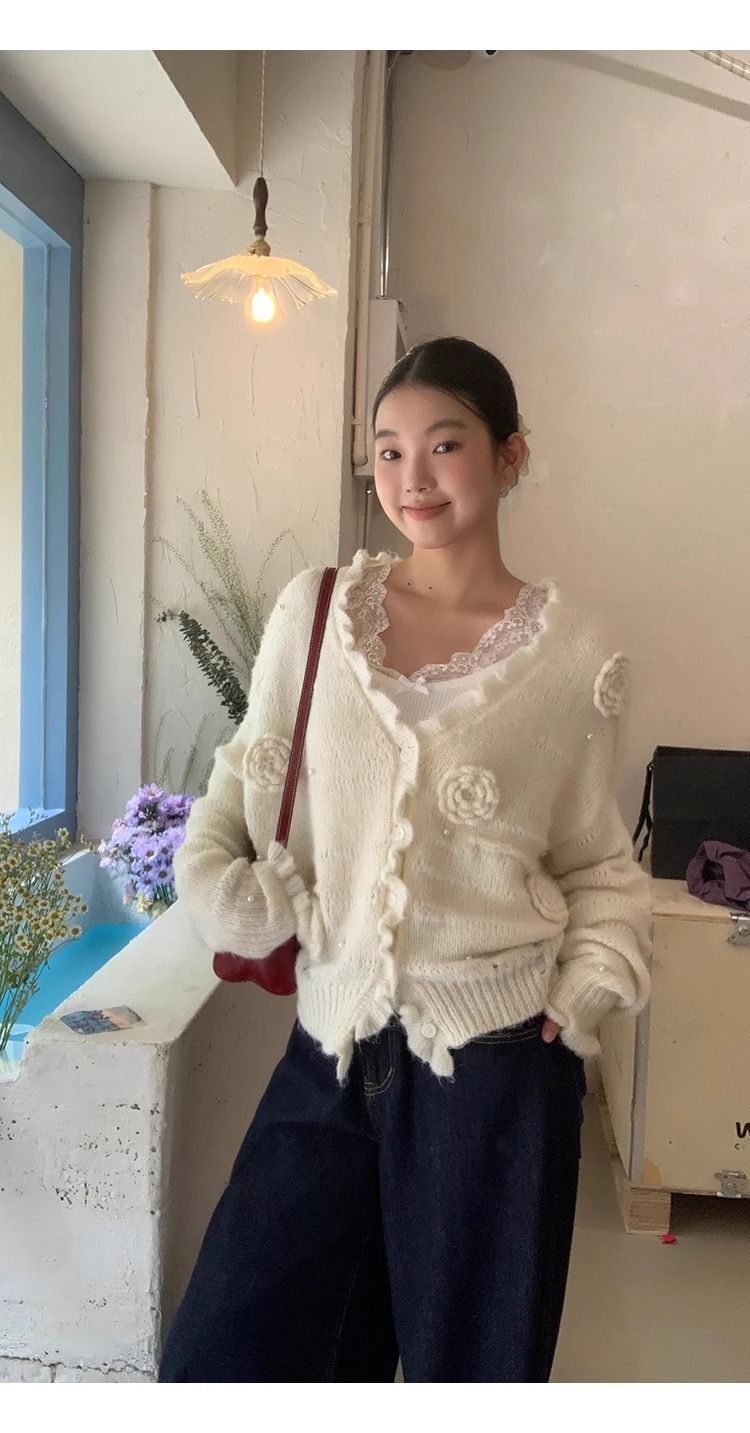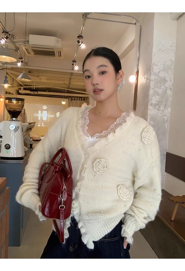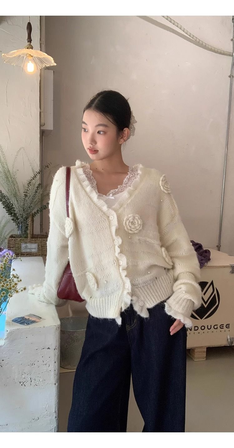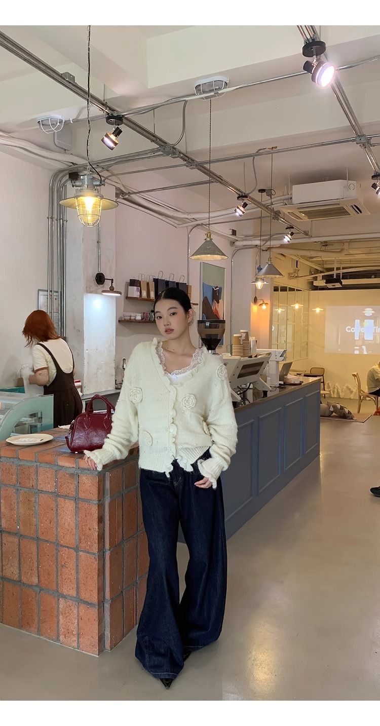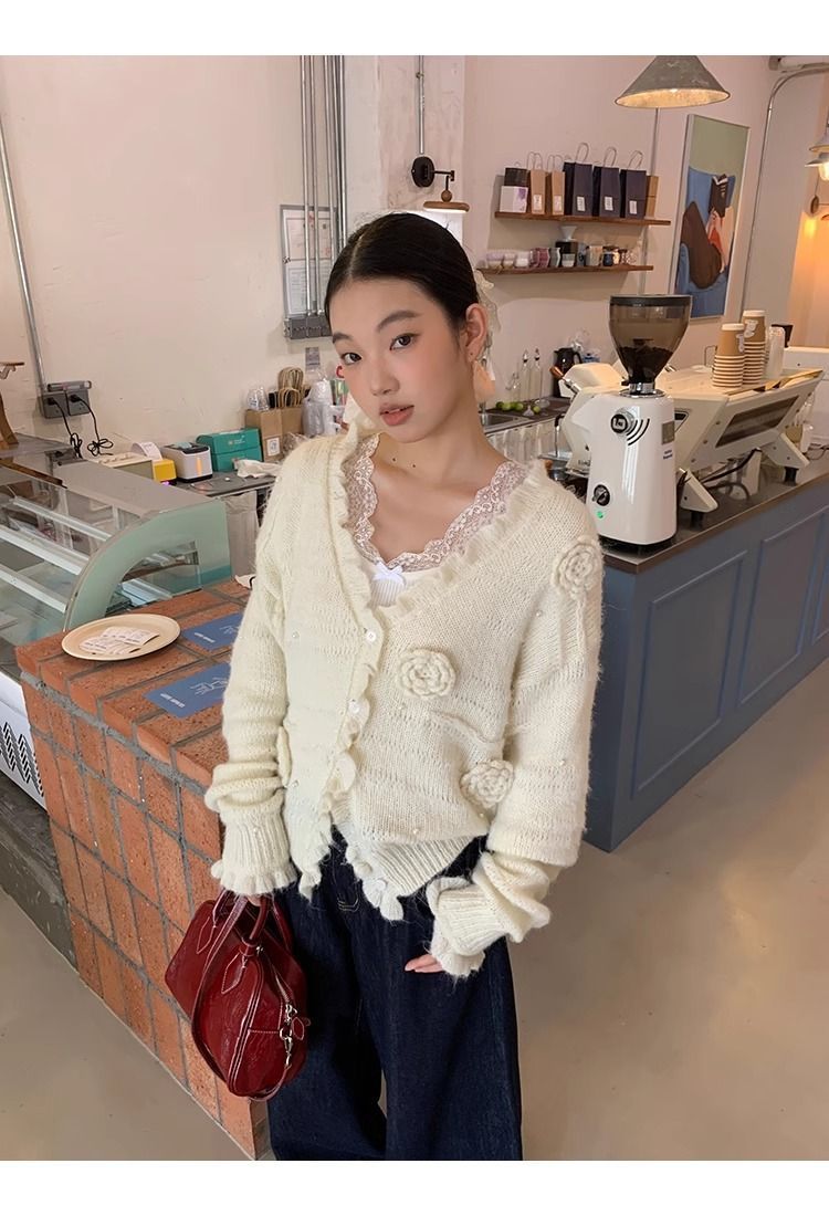 순수한 욕망 스타일 화이트 스웨터 여성의 봄과 가을 긴 소매 탑 게으른 하이 엔드 터틀넥 레트로 레이스 니트 스웨터스토어 가기