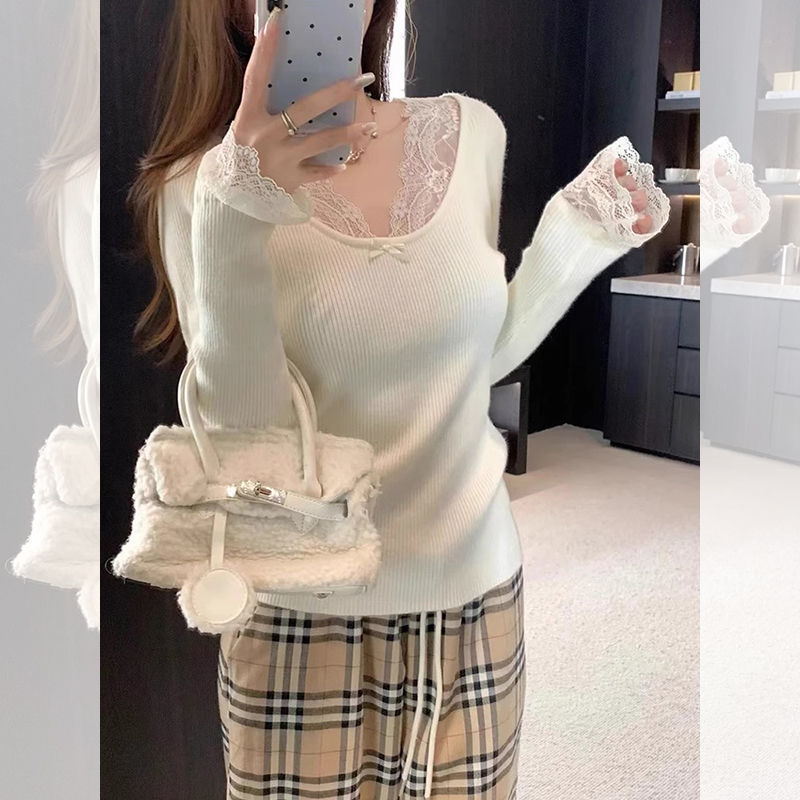 순수한 욕망 스타일 화이트 스웨터 여성의 봄과 가을 긴 소매 탑 게으른 하이 엔드 터틀넥 레트로 레이스 니트 스웨터