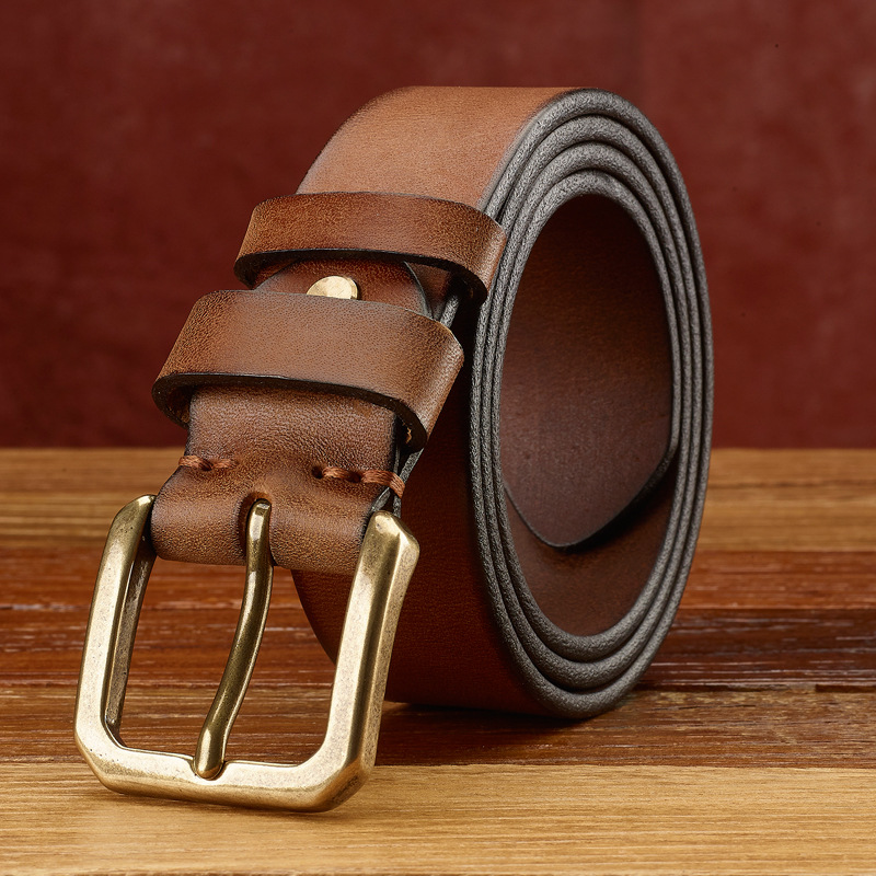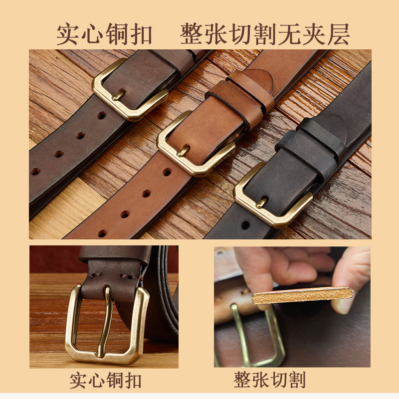 첫 번째 레이어 소 가죽 정품 가죽 남성 벨트 구리 버클 전체 컷 중간층 복고풍 오래된 영국 스타일 벨트 도매