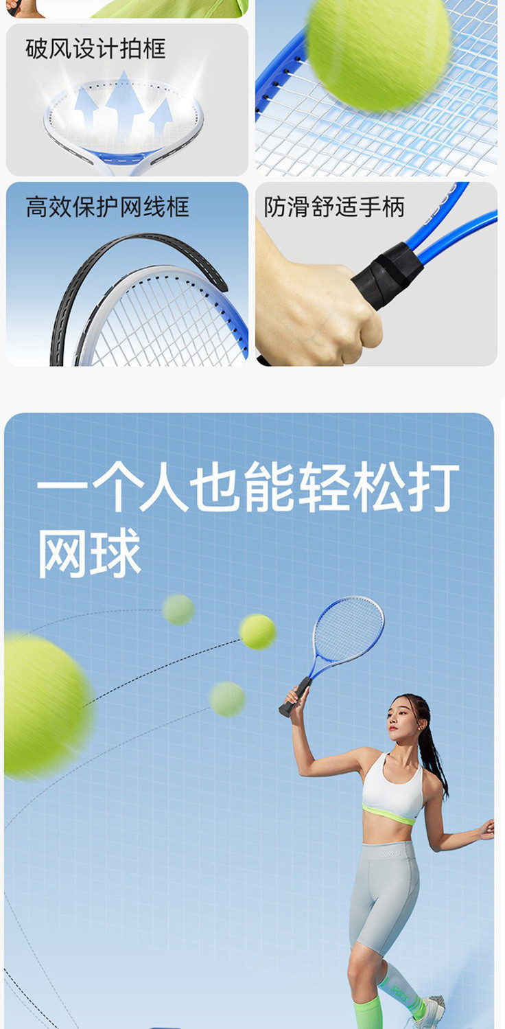 • 파란색 성인 싱글 라켓 [빨간색을 메모할 수 있음] - 빈 바구니 [탄력 있고 두꺼워진 테니스 공] 업그레이드된 강도의 나일론 라켓 스트링