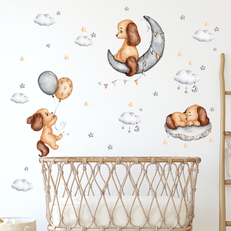 만화 구름 달 귀여운 강아지 자기 접착 벽 스티커 어린이 방 배경 벽 장식 스티커 BR1149E