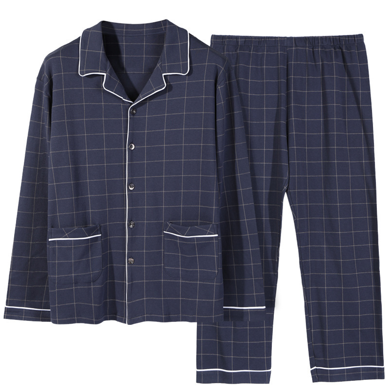 뚱뚱한 형 잠옷 남성 플러스 사이즈 더하기 지방 플러스 격자 무늬 긴 소매 바지 홈 옷 2 피스 세트 머리카락 세대스토어 가기