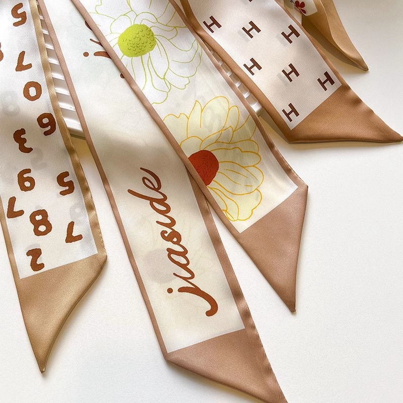 프랑스 누드 고급 실크 스카프 인쇄 헤어 타이 백 긴 작은 리본 활 선물 상자 장식 작은 실크 스카프스토어 가기
