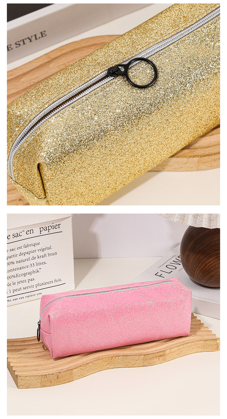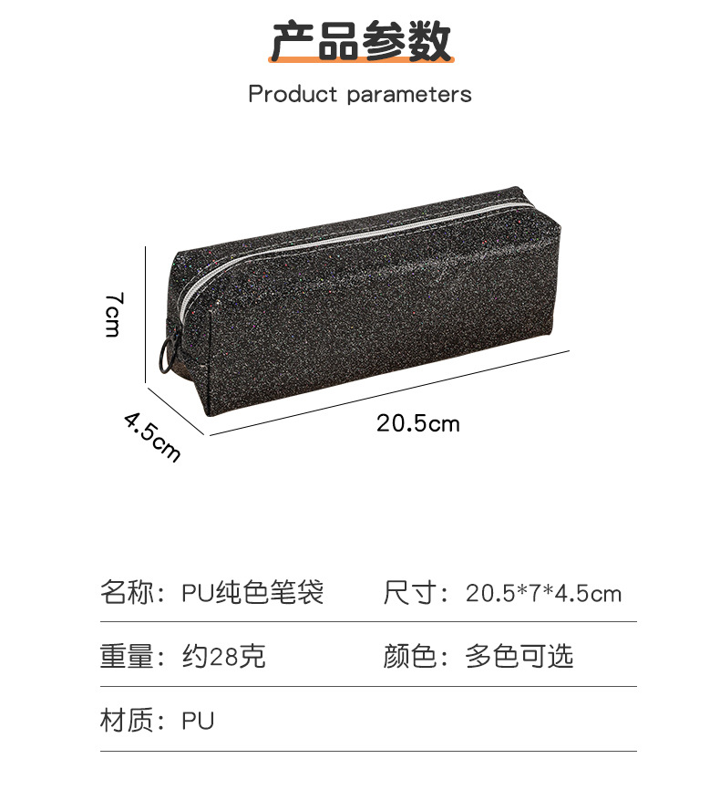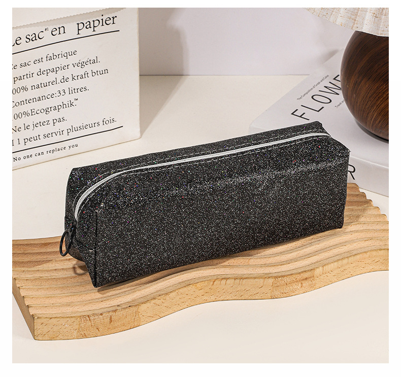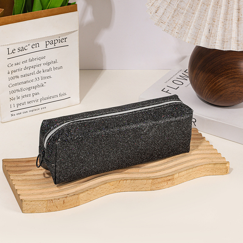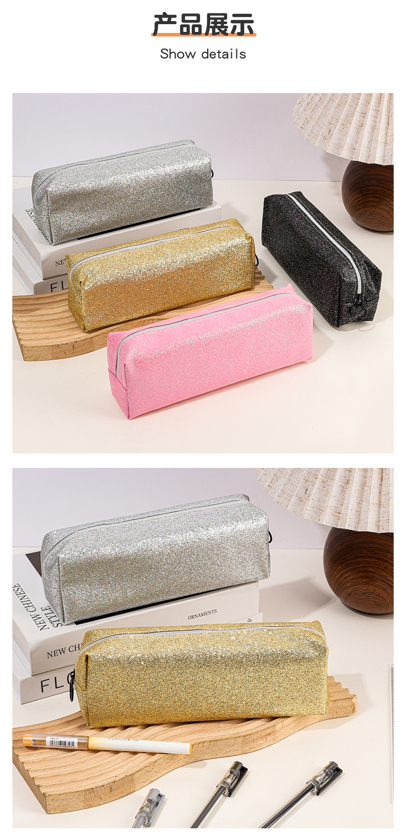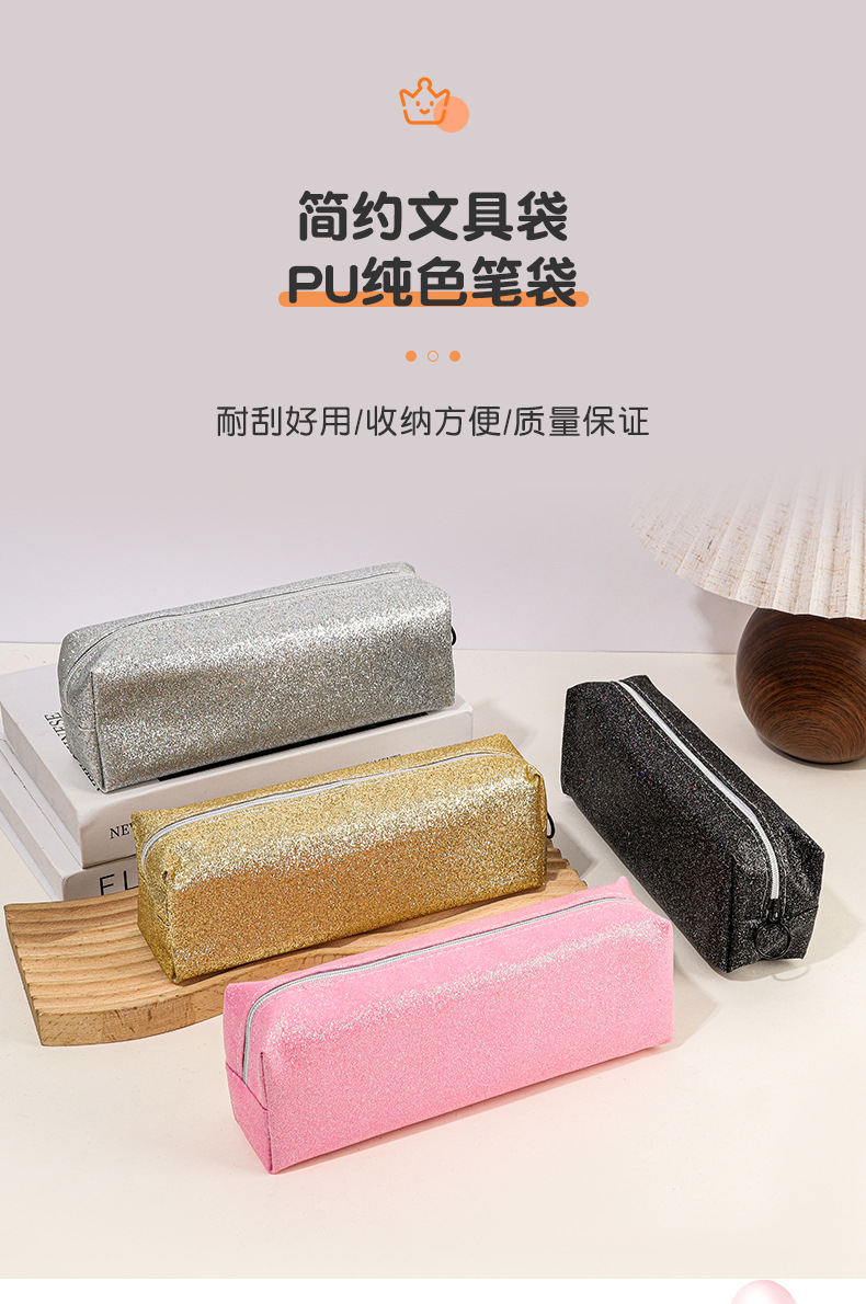 새로운 PU 단색 반짝이 펜 케이스, 제조업체 직송, 학생용 대용량, 오염 방지, 휴대용 문구 가방, 연필 케이스